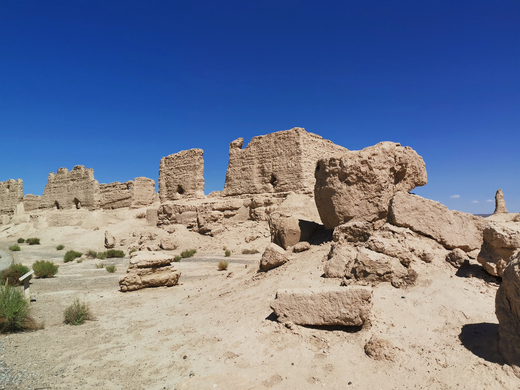 两小时之后,终于到了同样孤零零玉门关,想当年金戈铁马气吞万里如虎,如今仅剩下断壁残垣,恍惚间想起来来往往的商人,带着琳琅满目的商品,曾经都在我们踏足的地方。玉门关、汉长城和河仓城已形成了一个闭合的环线,完美的展示了千年前的城关、防线和补给配套设施。