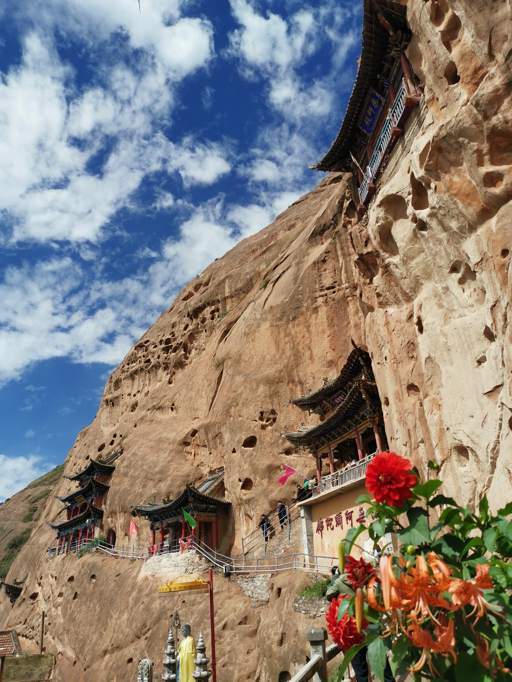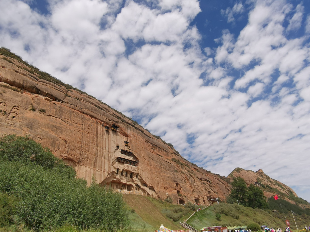 新一天的行程本来是先过祁连大草原转向阿柔大寺再返程西宁的;结果导航直接带着我们踏上了县道,渐渐偏离了高速,一路向着雪山的方向奔驰,转眼一看行进途中靠近“马蹄寺”,于是再次默契的调整了行程,来到了这个和莫高窟、榆林窟齐名的石窟博物馆,踏上了唐玄奘西行曾经踏足过的地方。