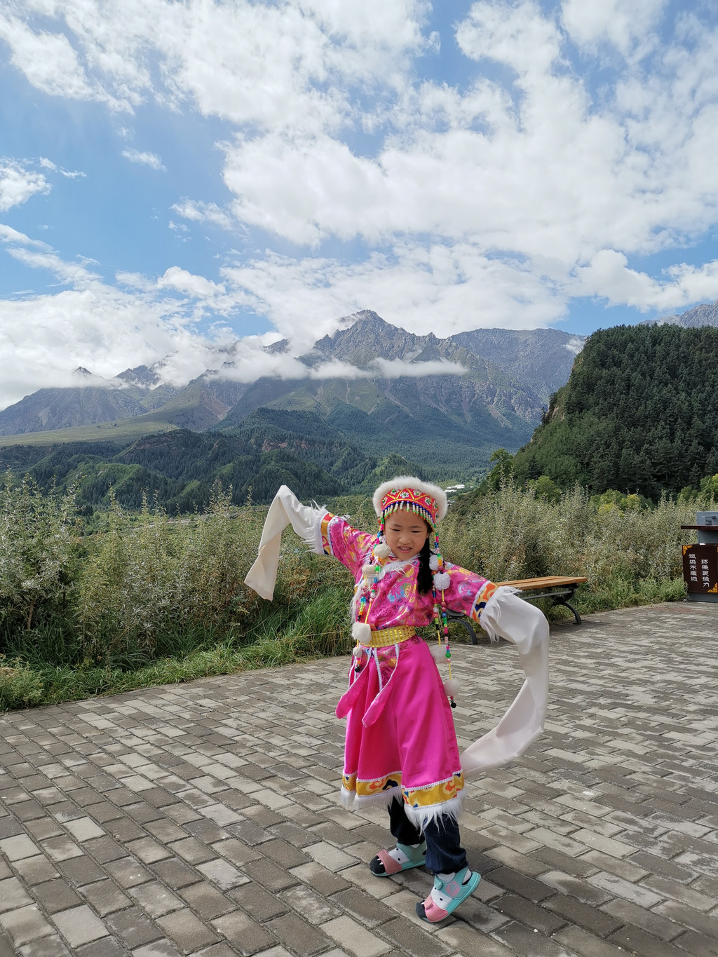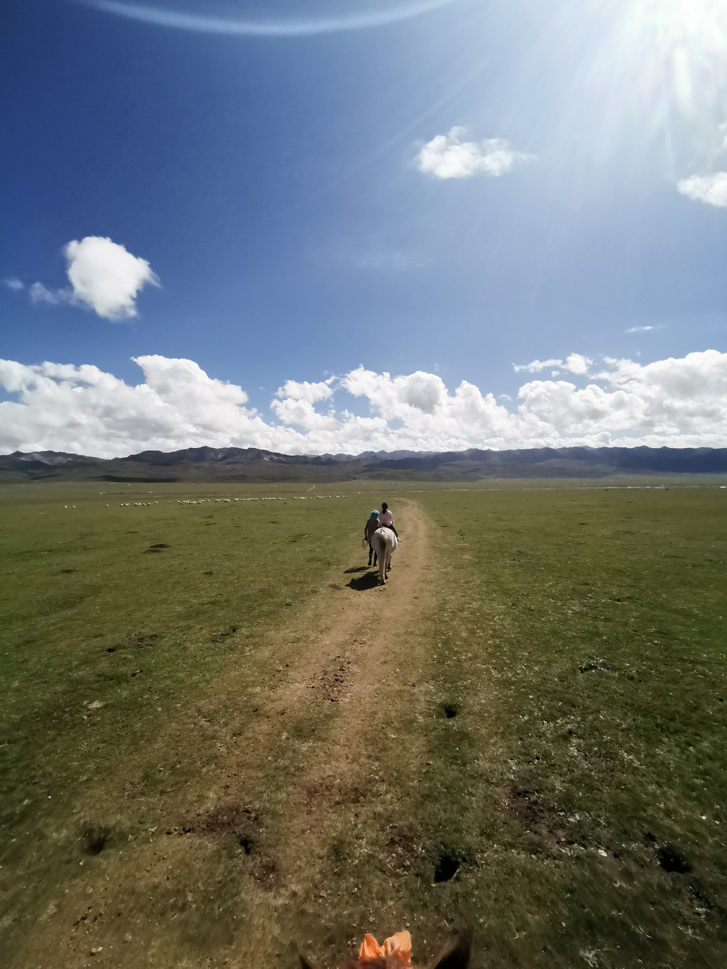 满满妹妹一顿藏族服饰载歌载舞以后,我们流连于祁连山脉,来到了满满此行另一个重大的安排,祁连大草原骑马。第一次踏上马背的满满妹妹显得并不害怕,在马夫的牵引下,连着换了一白一黑两匹马,才心满意足的躺回了汽车的后座。