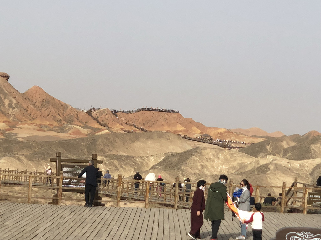 当天正好是五一,下图是景区重点:2号观景台,远看以为是城墙,近看原来是人墙。当时被这阵势吓着了,还好后面去了那边,人还不算多,还是可以看到美景的。最后太阳快下山了变冷了才提前回到车里。车上司机老白说起塔城老家往事,说那边十点还没天黑,小时候吃过的西瓜很甜,吃完不抹嘴抹手的话会被粘住,但是现在没有这么甜的瓜了。我对新疆那边又有点向住了……