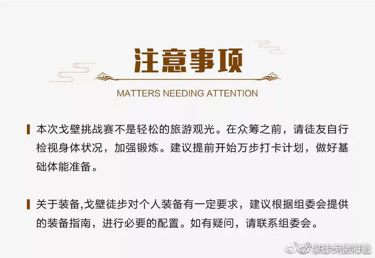 来自灵魂最深处的体验,一生有一次,就足够震撼。 戈壁徒步4天时间,徒步穿越108公里,全程陪伴的只有资深的拓展训练师,在那一刻,抛下红尘俗世的纠结,进入自己的内心世界。