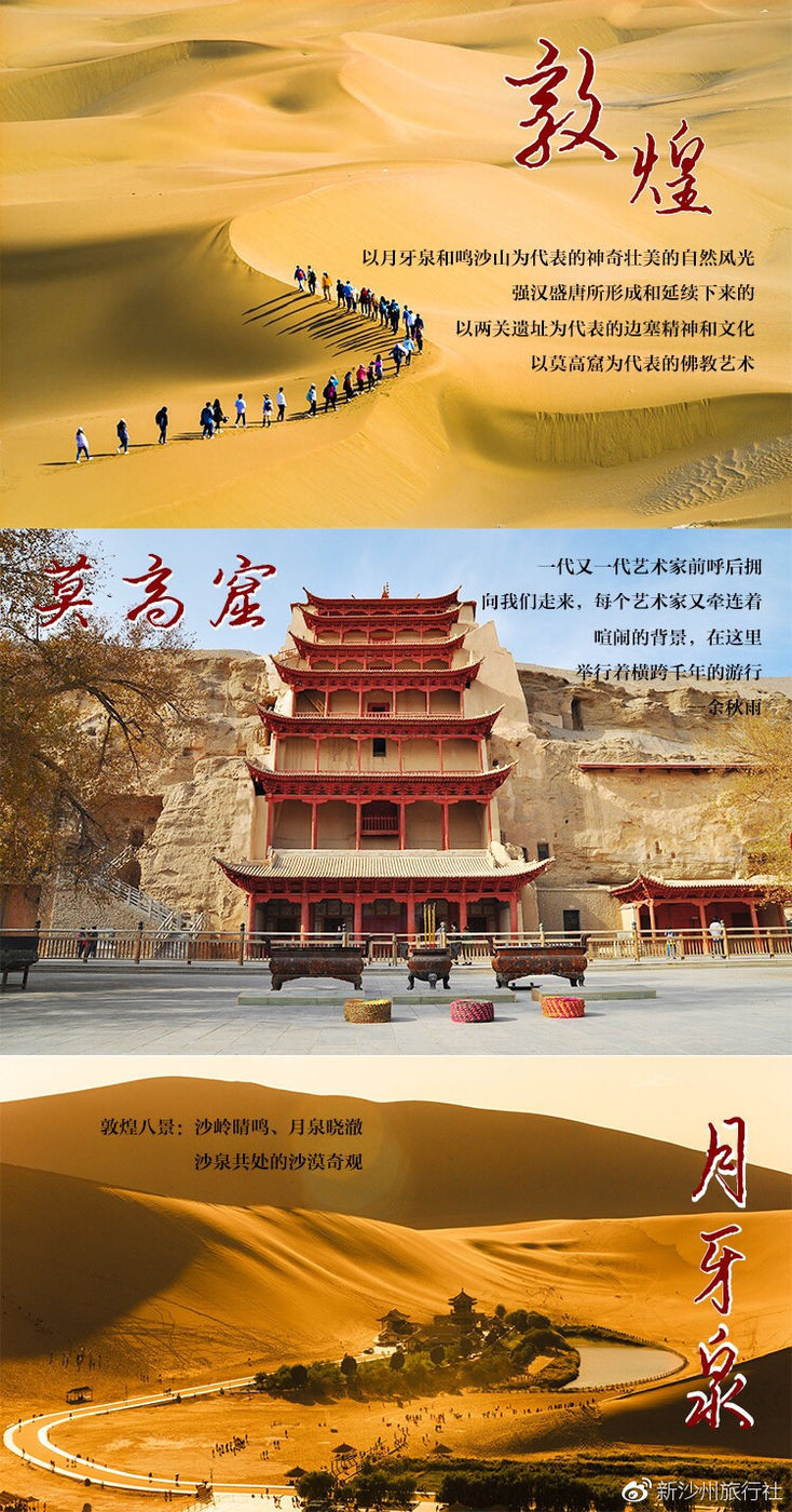- [3小时前] Miya** 发表了酒泉资讯 敦煌的戈壁太有力量了,莫高窟壁画一下子把我秒回古代!月牙泉落日超美,随便拍都很上镜~