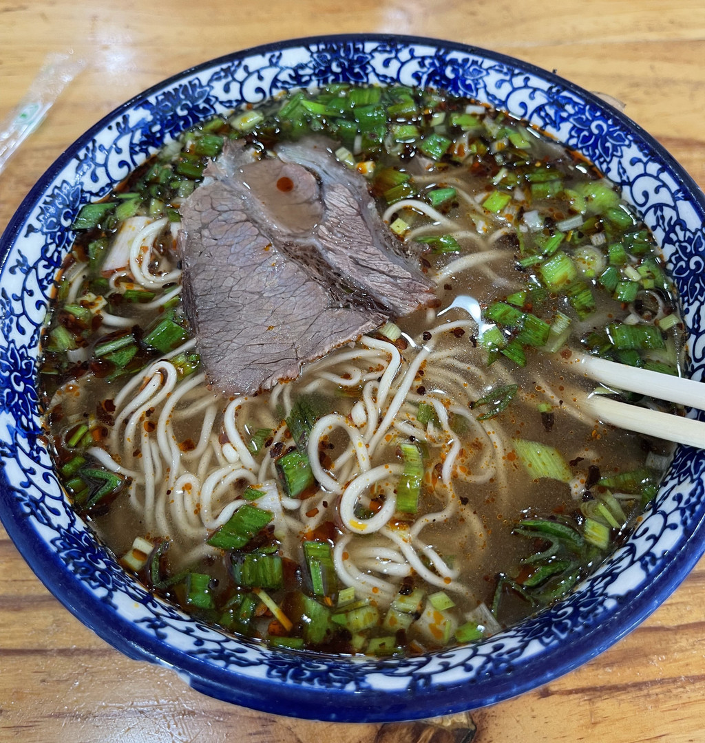 下了动车,肚子也饿了,直接拉着行李到西站边上的马子禄牛肉面。耳熟能详的兰州拉面,但是在兰州是没有兰州拉面的,只有兰州牛肉面,一清、二白、三红、四绿、五黄,一碗兰州牛肉面正式开启旅行啦。