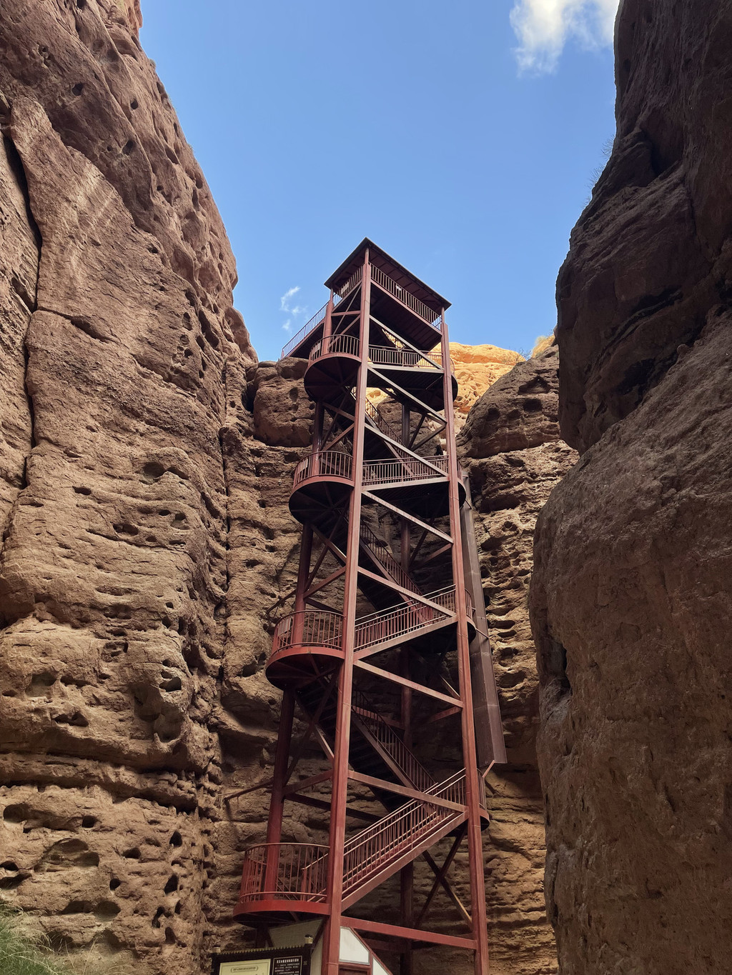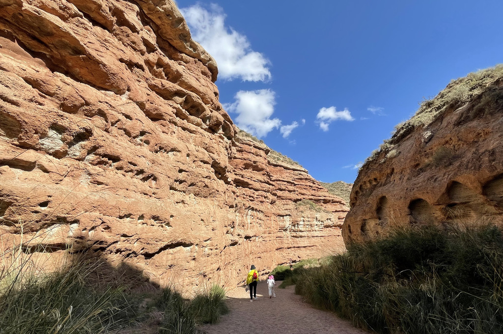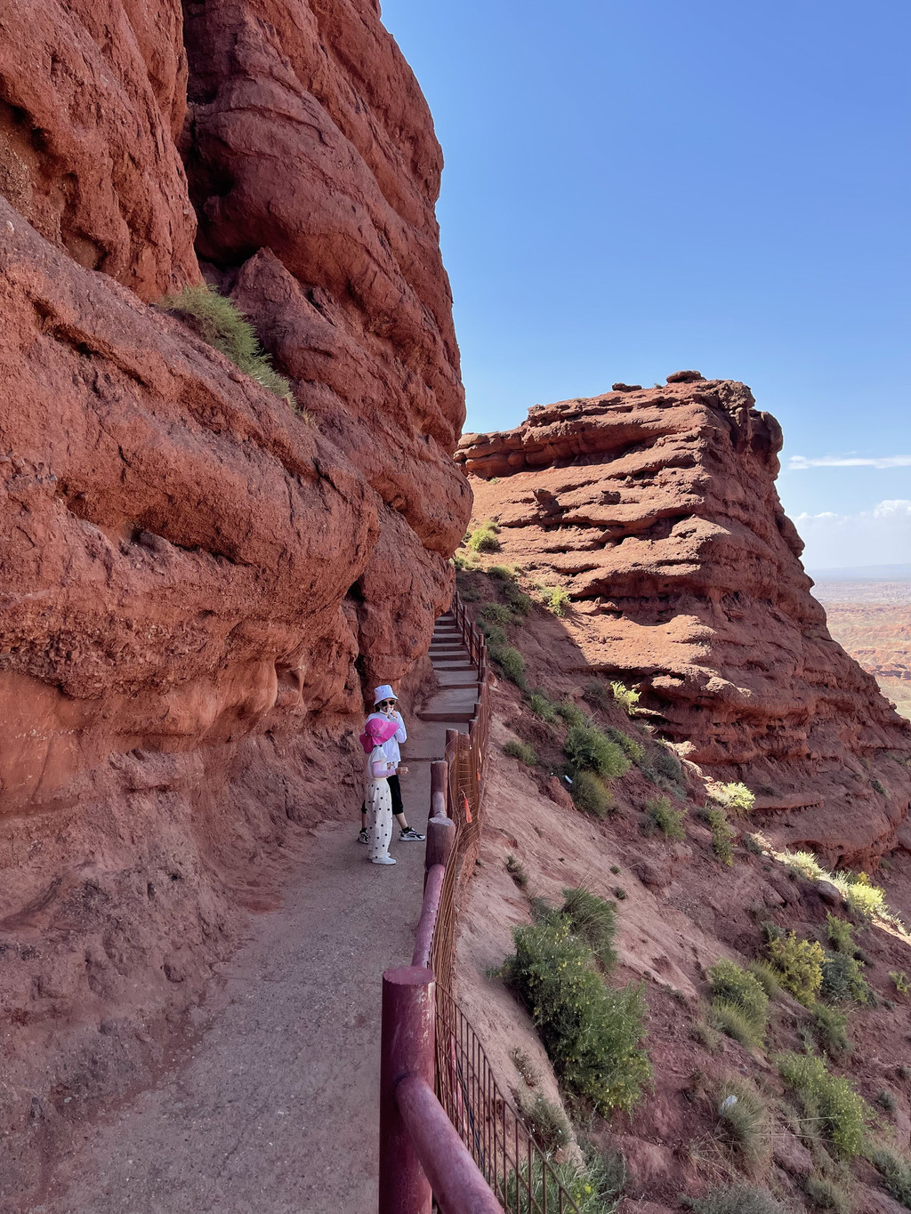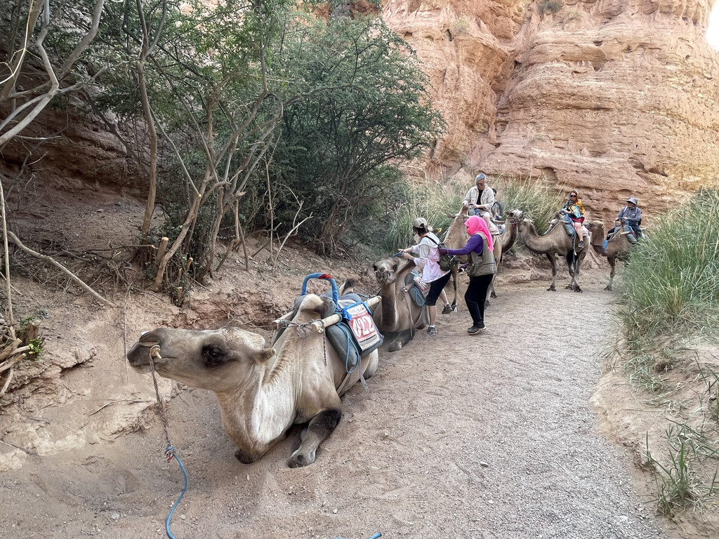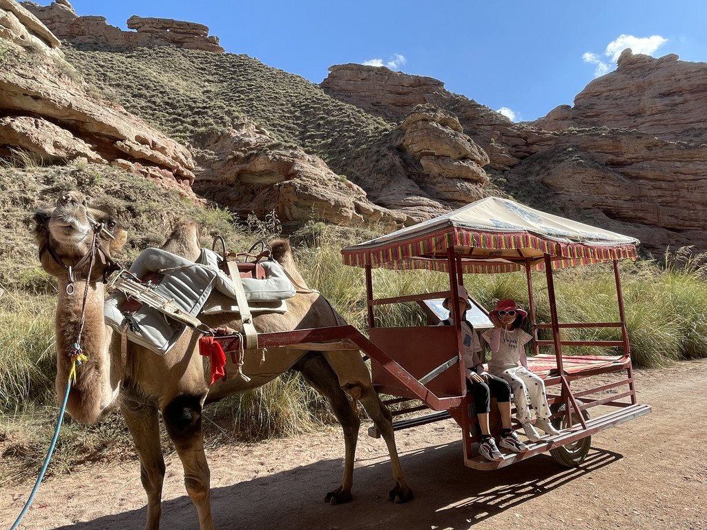 我们买了深度游套票,坐景区接驳车先到观景台参观,然后坐探险车深入谷底,走一小段路后,开始坐驼车,再走一小段路,开始骑骆驼,最后通过垂直梯直接返回谷顶。小朋友们不会累,体验感也不错。