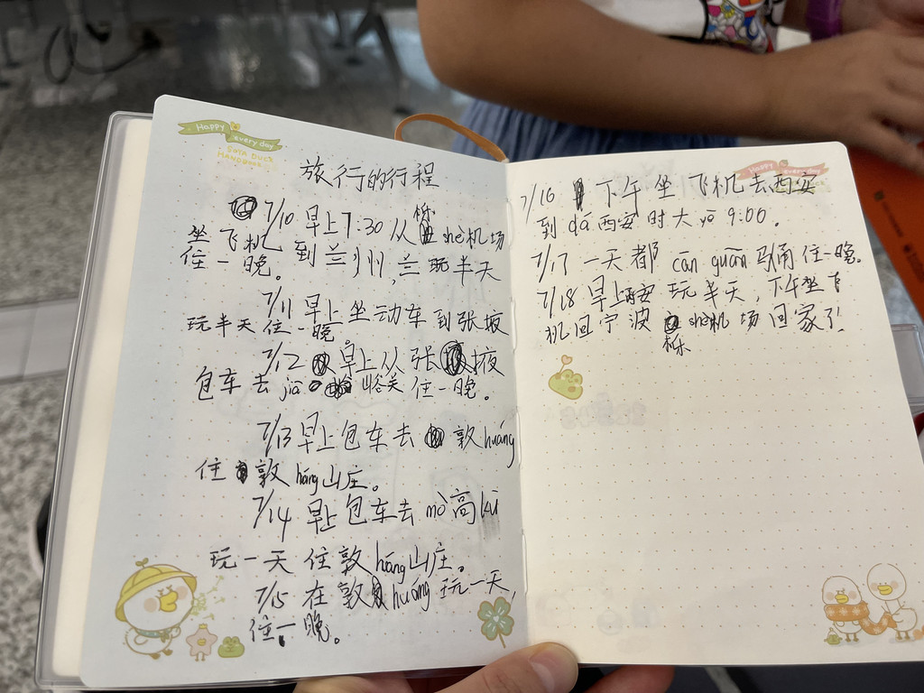 敦煌之行,缘起于小朋友听了凯叔的《敦煌密码》,心之向往。而我纠结于一年级小朋友去敦煌,到底能看懂多少呢?虽迟迟未定行程,但我还是有所行动,一方面给小朋友借了一些敦煌的绘本、书阅读,另一方面我查找各类研学活动,是否有合适的。最终,参加研学活动被我pass了(价格合适的活动看不上,活动看得上的价格太贵),而小朋友坚定地回答,让我决定还是自由行吧。就这样,6月底决定,7月10日就出发了。