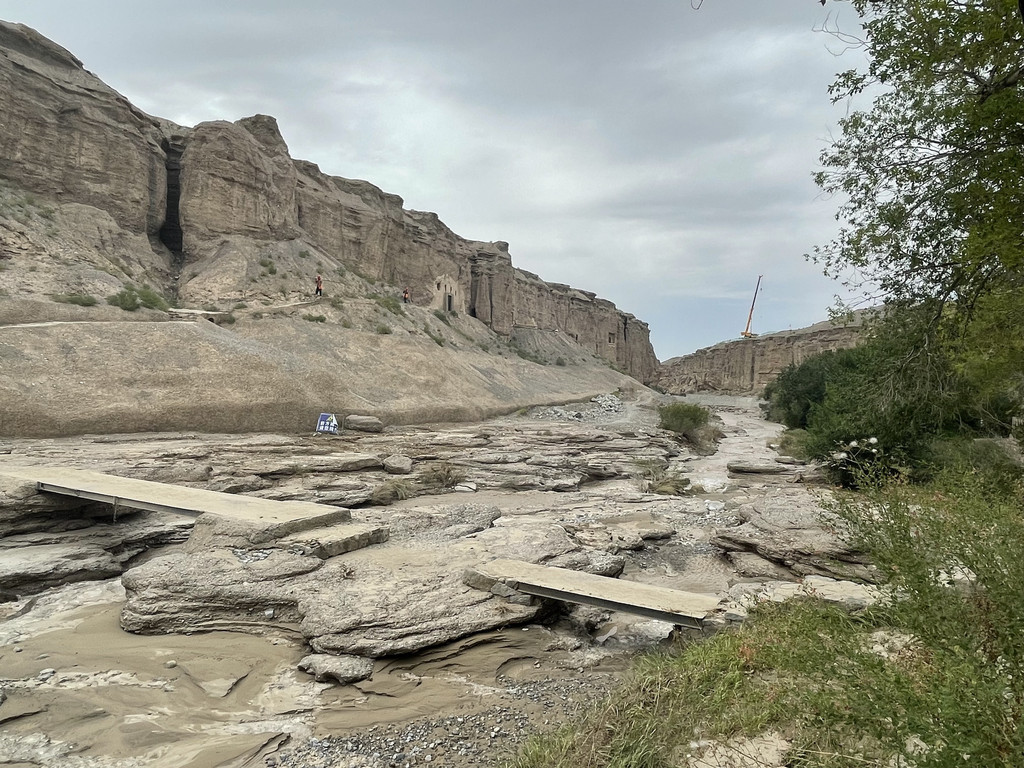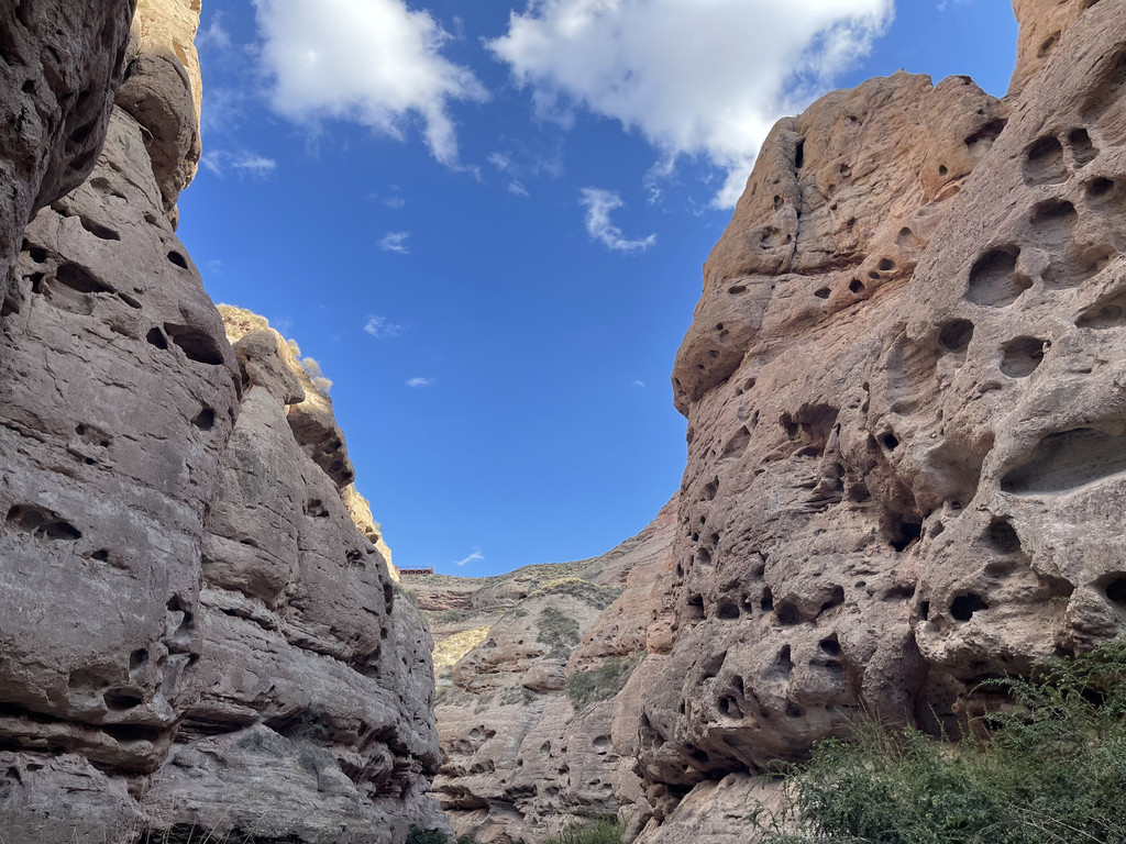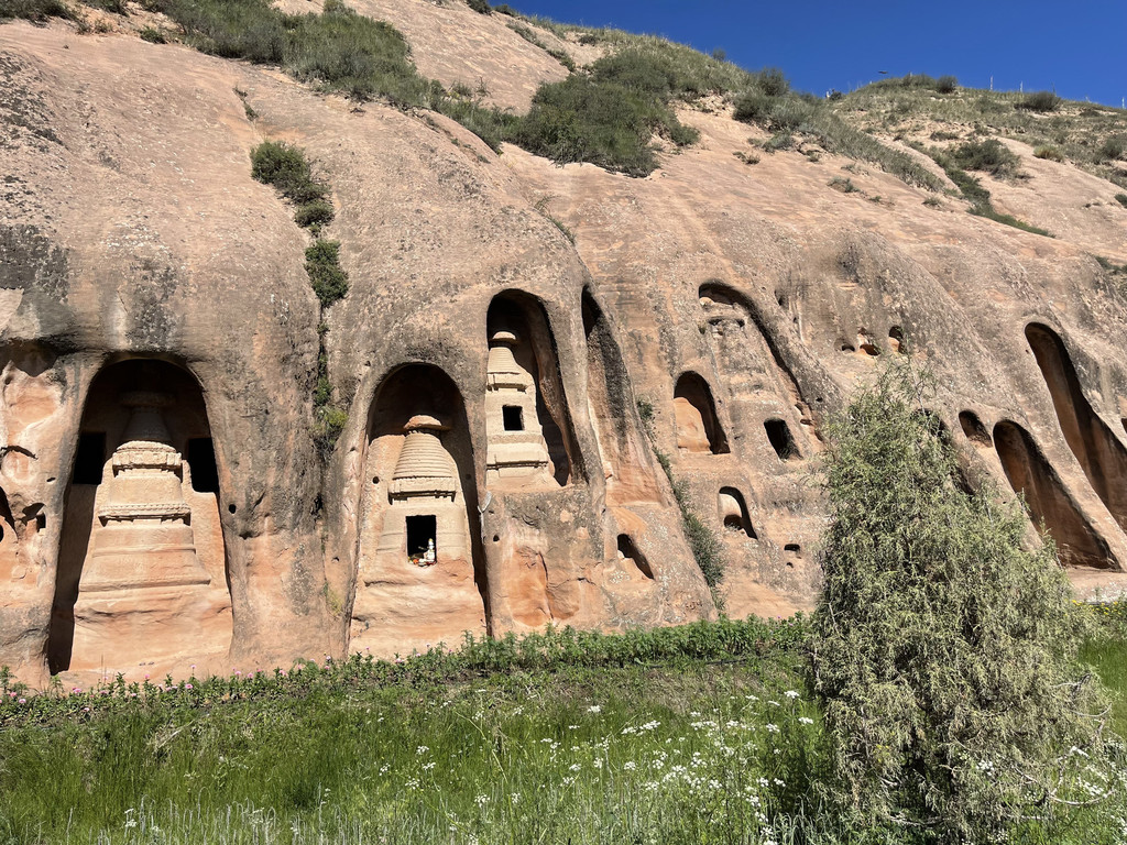 匆匆赶往瓜州,午饭点刚好在高速上,都没地方吃饭。幸亏娃们买了个新疆馕。榆林窟又名万佛峡,洞窟开凿在榆林河峡谷两岸直立的东西峭壁上,因河岸榆树成林而得名,是我国著名的石窟之一。榆林窟壁画内容和风格与敦煌莫高窟有着不可分割的联系,又称为敦煌莫高窟的姊妹窟,是敦煌石窟艺术体系的重要组成部分。现存有完整壁画的洞窟43个,其中东崖32窟、西崖11窟。保存着彩塑272身、壁画5650余平方米。