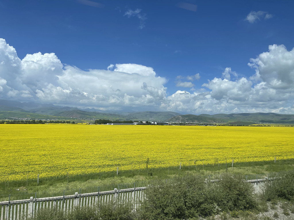 时值七月,扁都口的油菜花大片大片的,即使坐在动车上,也能感受到它的热闹。