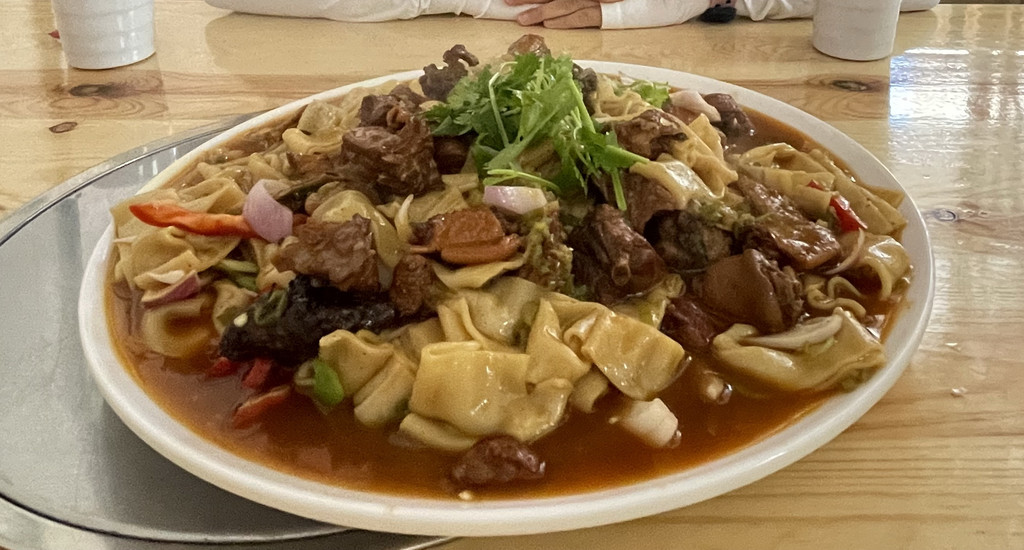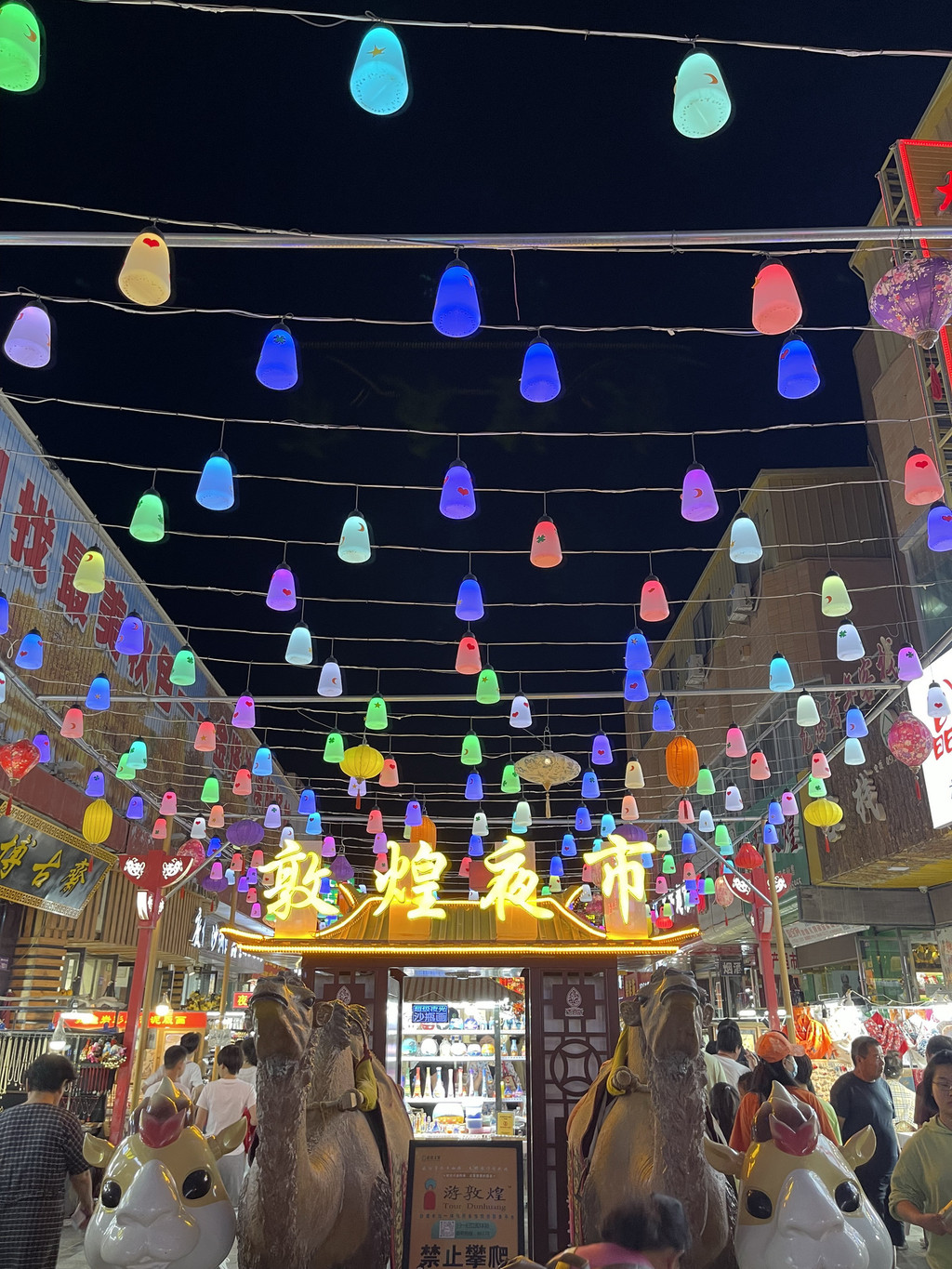 途径大地之子,锁阳城是来不及看了。赶到敦煌,入住敦煌山庄。虽说敦煌待三晚,那也是行程满满。今晚就先安排夜市,娃们要买小纪念品呐。晚餐吃了大名鼎鼎的驴肉黄面,说实话,我不太喜欢。