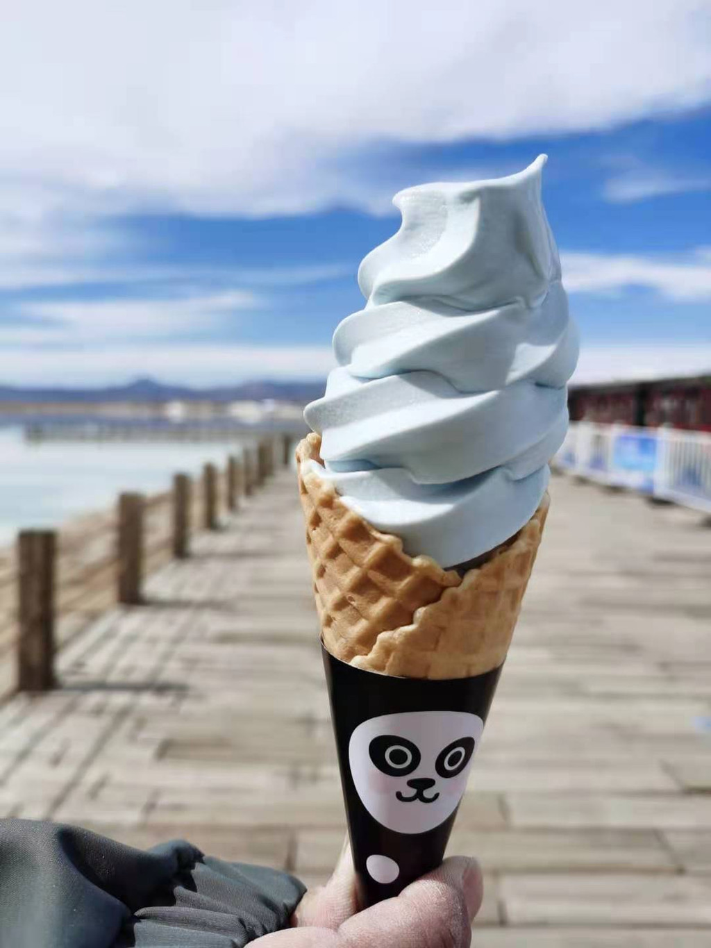 吃了午饭就去茶卡盐湖了。路上经过日月山,就是文成公主进藏经过的地方。茶卡盐湖说实话,我觉得单纯论景色,在这条线路的湖里面不算很美,不过开发的太过了,感觉就是有人太多,想要拍照片根本避不开人。在茶卡盐湖那边有个特色的青盐冰淇淋,真的蛮好吃的