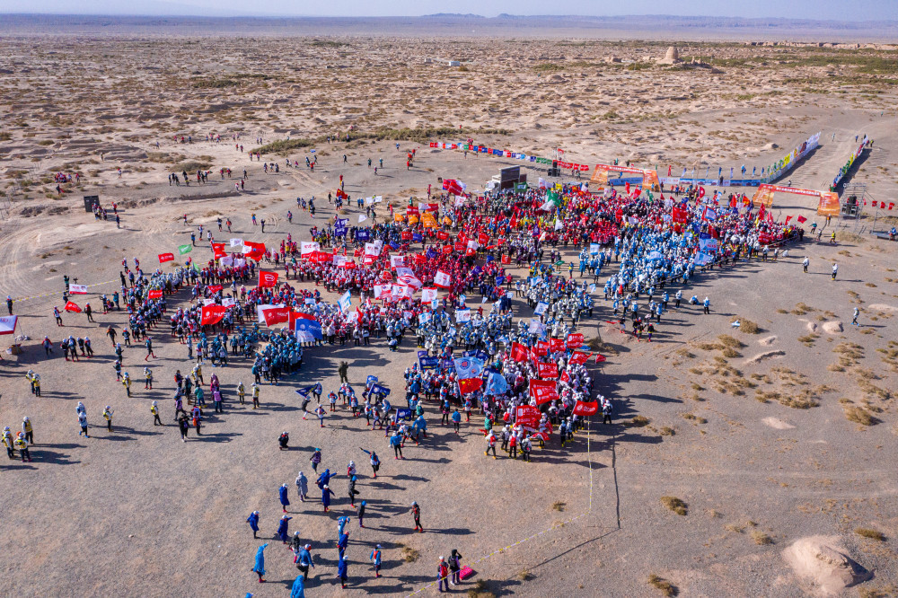 4天3夜121公里徒步线路,这条线路整个在瓜州,开幕闭幕在敦煌市,线路每届都有调整,大致为:阿育王寺-锁阳城-大墓之母阕-常乐驿-双墩子-昆仑障-黄谷驿-戈壁清泉。