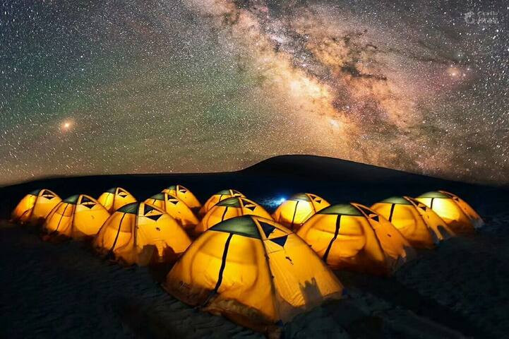 每年的7-8月(包括国庆长假),这是敦煌的旅游旺季,住宿是非常的紧张,宾馆客栈和民宿价格一路飙升,普通的标准间一般在300-600左右,相比较来说,沙漠露营活动中的帐篷住宿是非常划算的。露营基地都有完善的公用卫生间和洗手间,如果要洗浴的话是单独收费的,价格每人50元,所以说体验露营,在游玩的过程中,可以省去一天的房费。