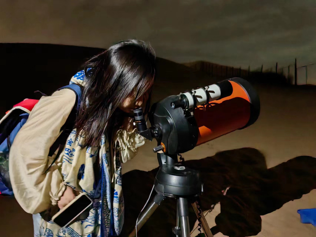 鸣沙山的后山,在党河沿岸有片小沙漠,距离市区约20公里,光污染比较小,安静隐蔽没有干扰,这里带孩子可以滑沙玩闹,交通方便,是沙漠观星的理想场所,也是敦煌秘境观星团的观星地之一。