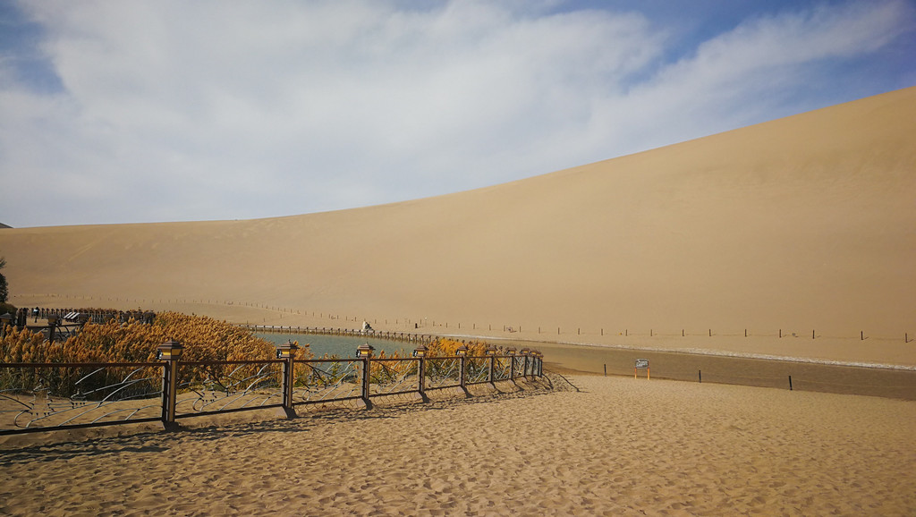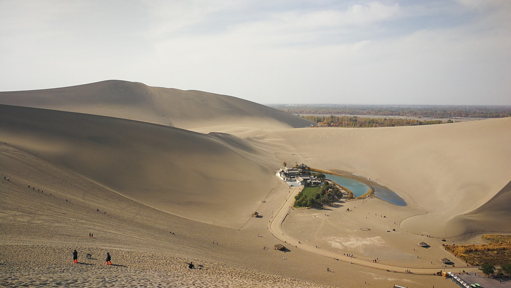 漫漫黄沙之中,一湾新月一般的潭水出现在我们的面前,更为神奇的是,在这个极度缺水干旱的沙漠之中,这一湾泉水几百年来不曾枯竭,确实是大自然的又一道神来之笔,鬼斧神工!