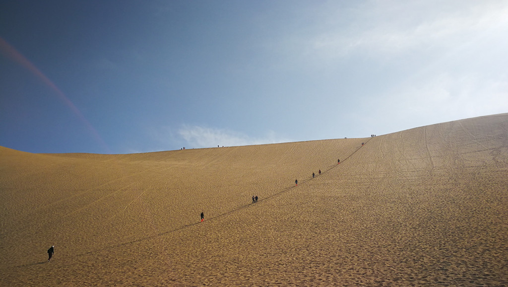 以前读余秋雨的《文化苦旅》中,就有一篇是描写鸣沙山的,当时就非常的好奇,为什么会叫鸣沙山呢,虽然也在书中看到了缘故,但未经身临其境,纸上得来终觉浅,原知此事要躬行嘛,这不,终于亲临鸣沙山啦!