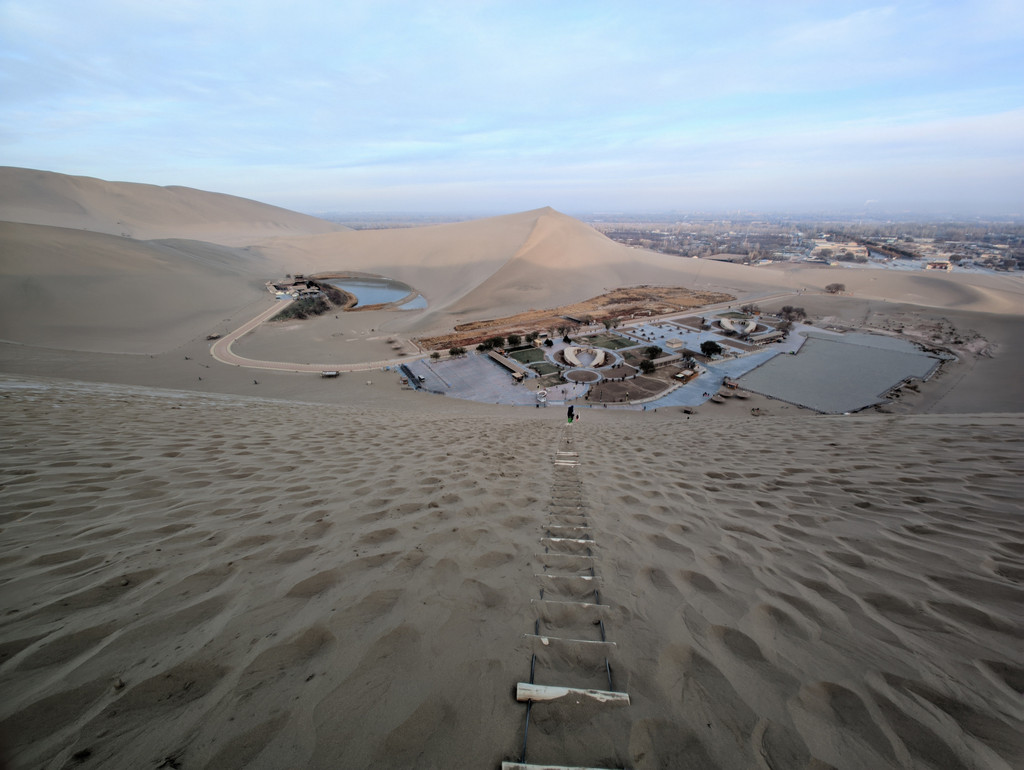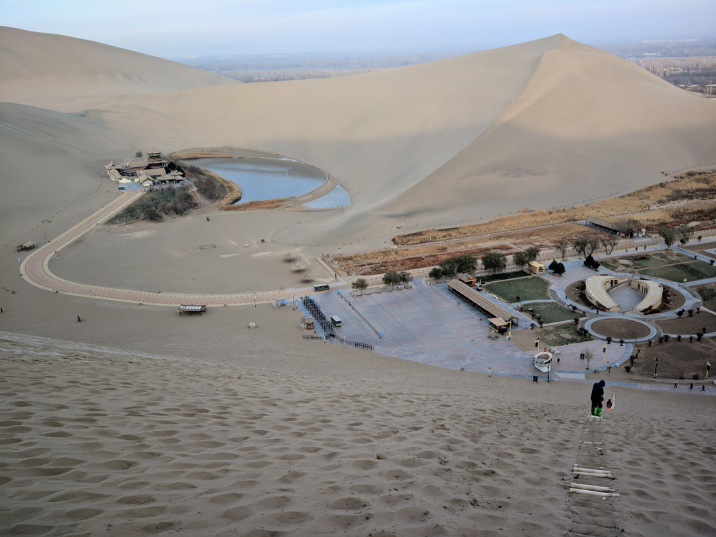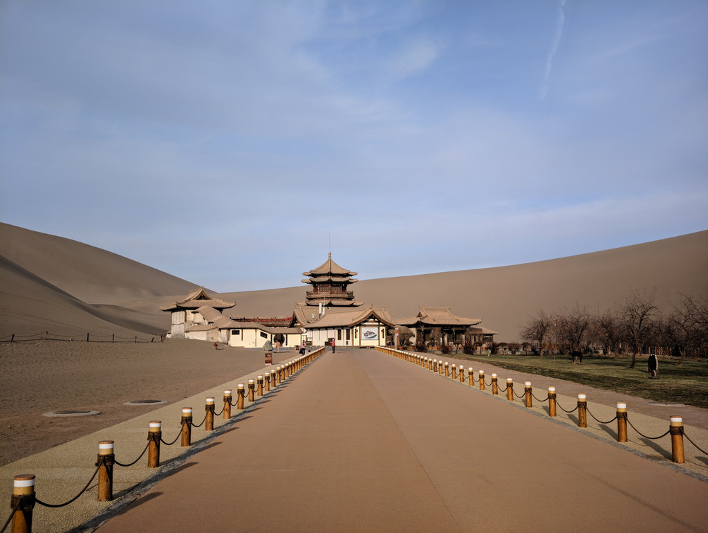进门后,熟门熟路的,我们一直向前,越过沙漠,到达鸣沙山下。