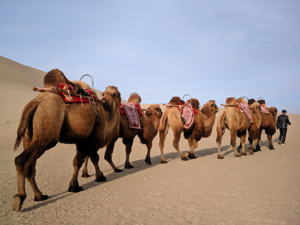 身处沙山,目及驼队,那个奔袭千里破匈奴的少年,虽隔千年,却沐浴同一片阳光,脚踏同一片土地,阵阵风声中,仍可以感受到霍去病精忠报国的豪迈之情。