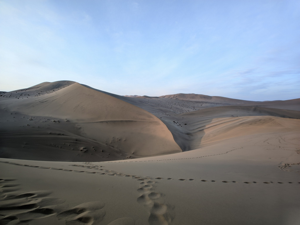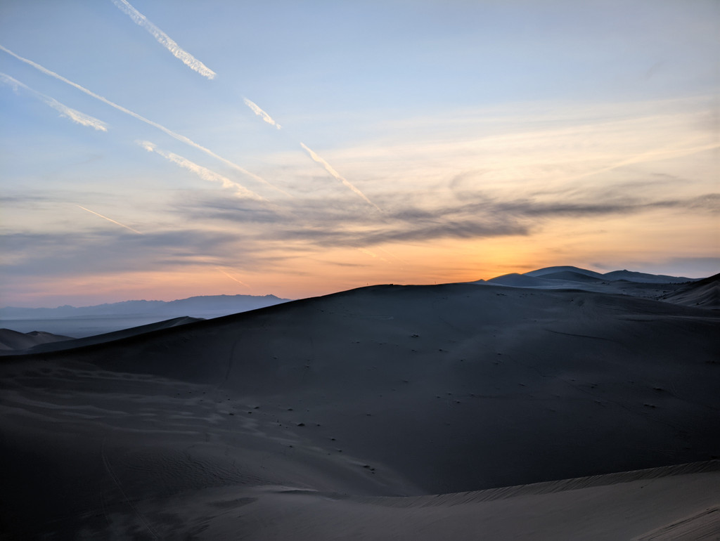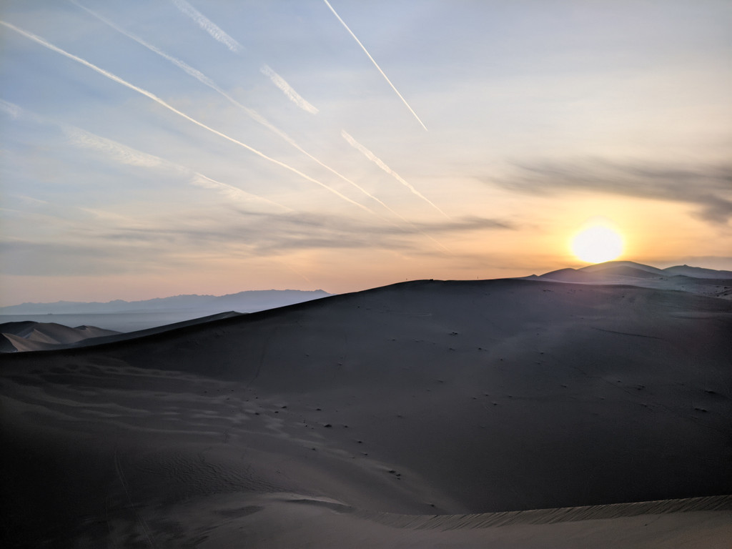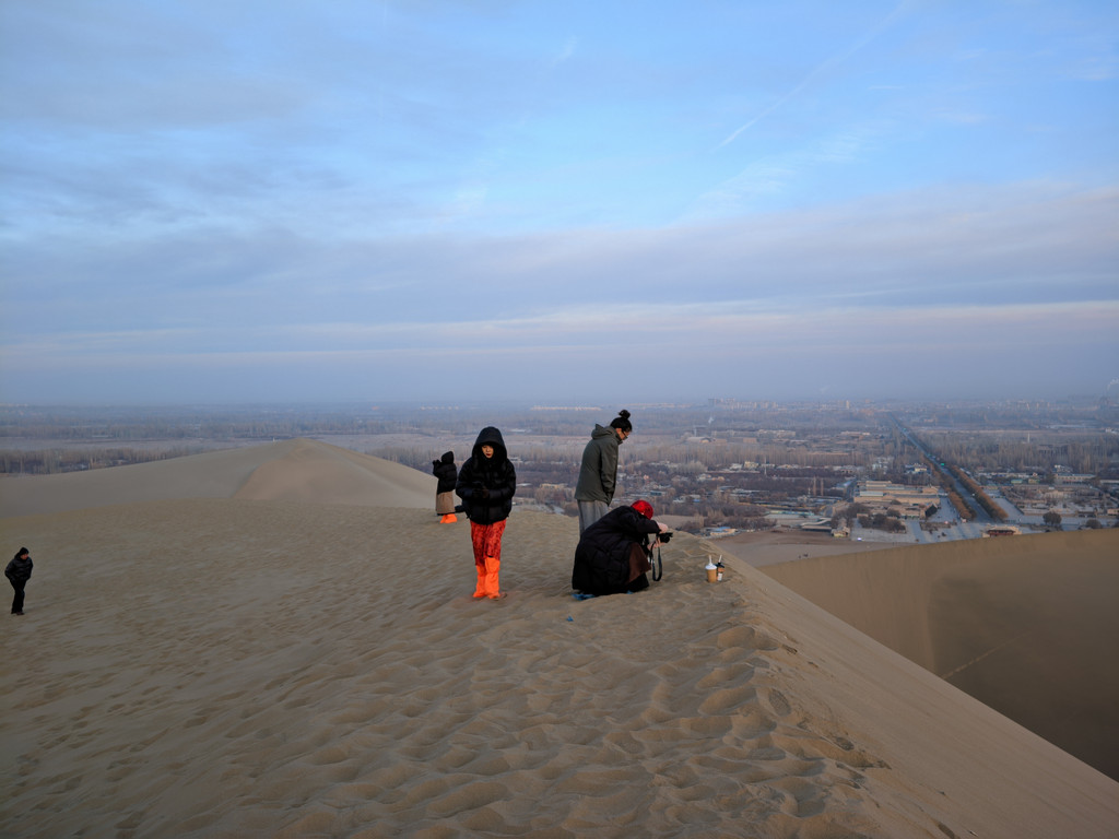 前天看了鸣沙山月牙泉的日落和夜景,我们决定今天再补个鸣沙山的日出,把薅羊毛行动进行到底。
