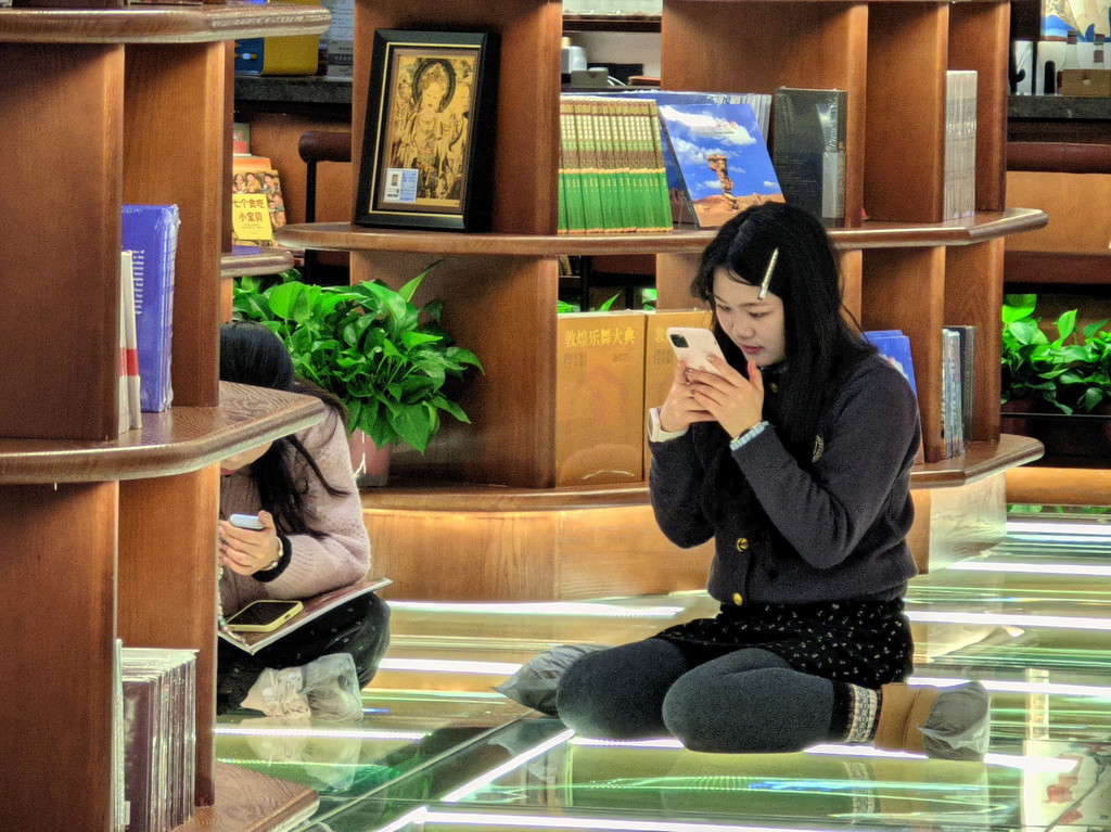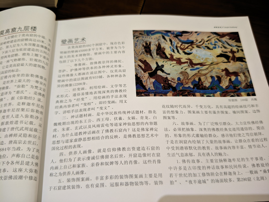 书局大部分书籍不能拆封,但也有很多专门拆开给顾客翻阅的,图文并茂。我找了一本介绍莫高窟的,结合前几天的参观见闻,看的津津有味。