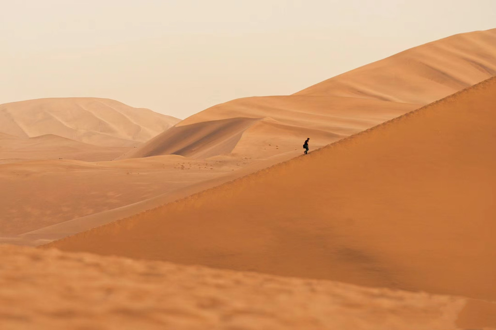 沙漠中的一切都像这般,浩浩荡荡,气势凛然,我们人类夹杂在其中,显得格外微不足道。但也是这样的经历,让我们知晓世界广博,知晓生命的厚重,领悟人生的意义。在徒步中修行,在沙漠里炼心,驰骋沙海,行有所得。