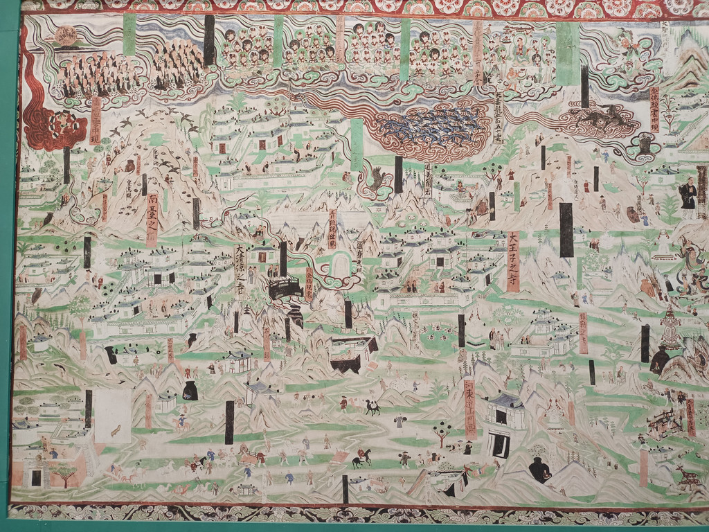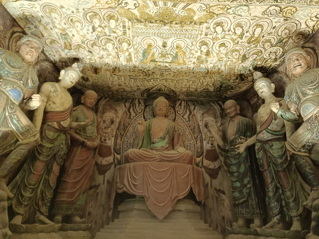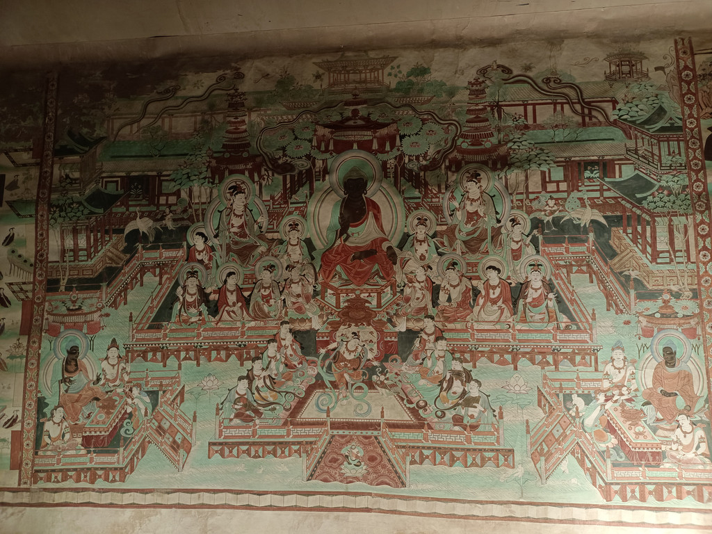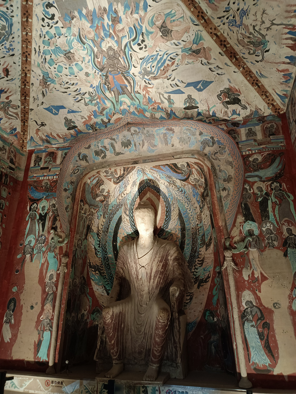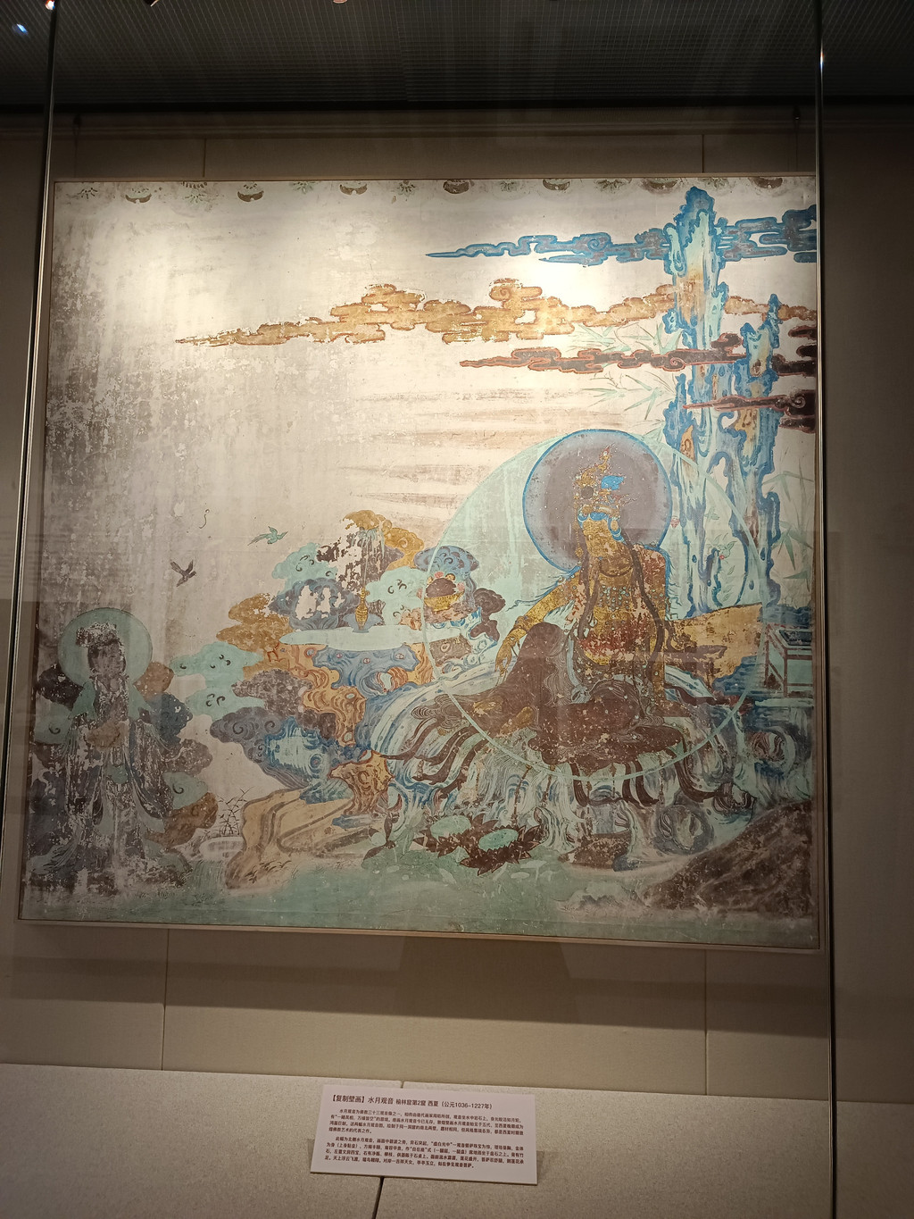 榆林窟的特色在于壁画,有“水月观音”、“文殊变”、“普贤变”等,不过这些有名的壁画都是特窟,要额外花钱并且预约才能看,所以我只看了几个普通洞窟。但好在后面逛博物馆和敦煌艺术馆时看到了复制品。