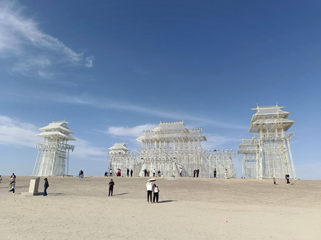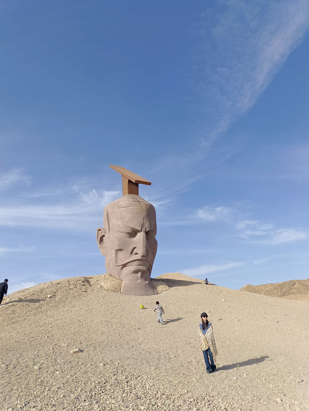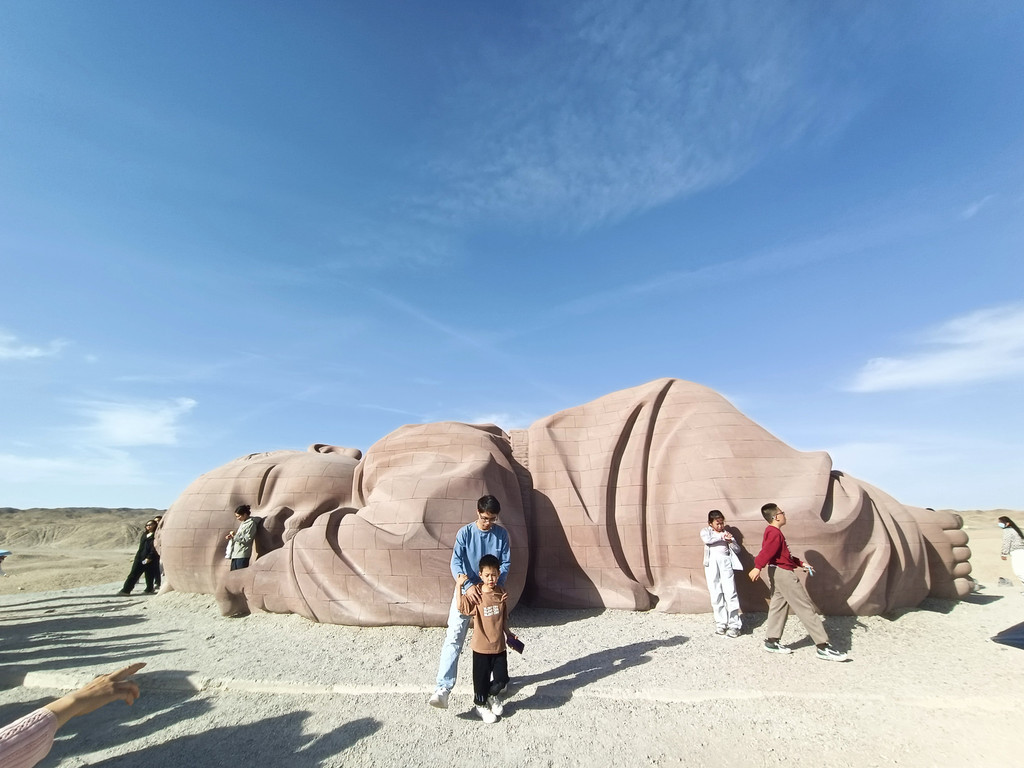 非常巨大的雕塑,但放在戈壁滩上就显得微不足道了。