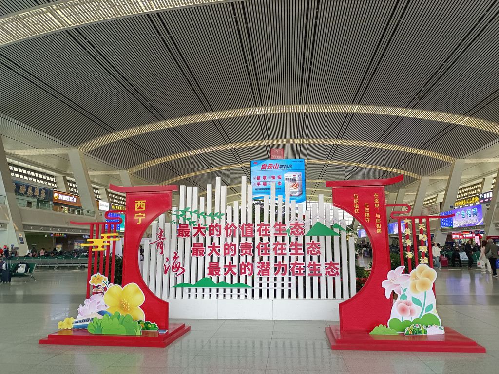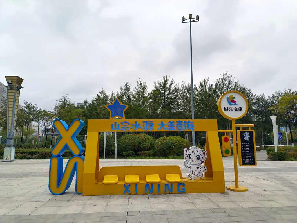 到达西宁,明显比兰州温度低一些,还未出站,便有很多“雪豹之都”的提示,连台阶都画了喜庆的小雪豹。