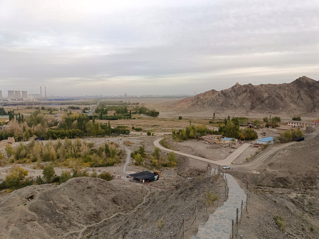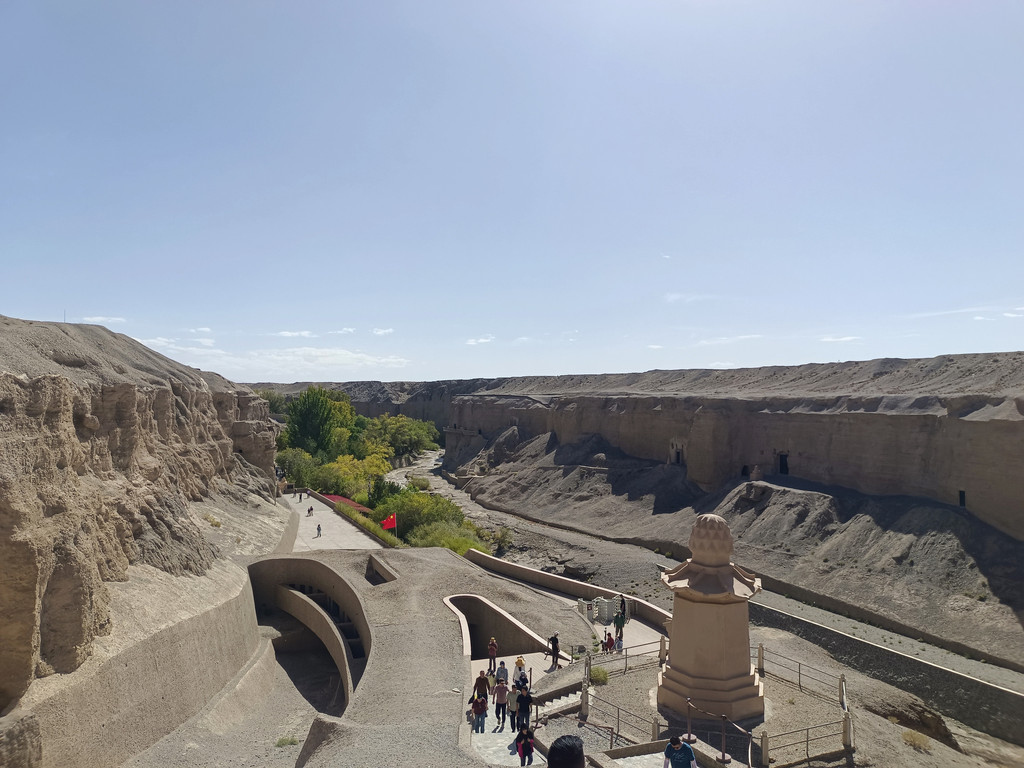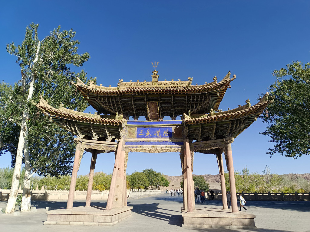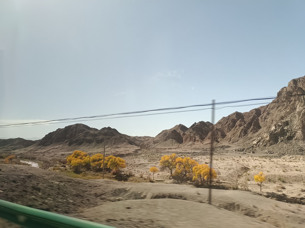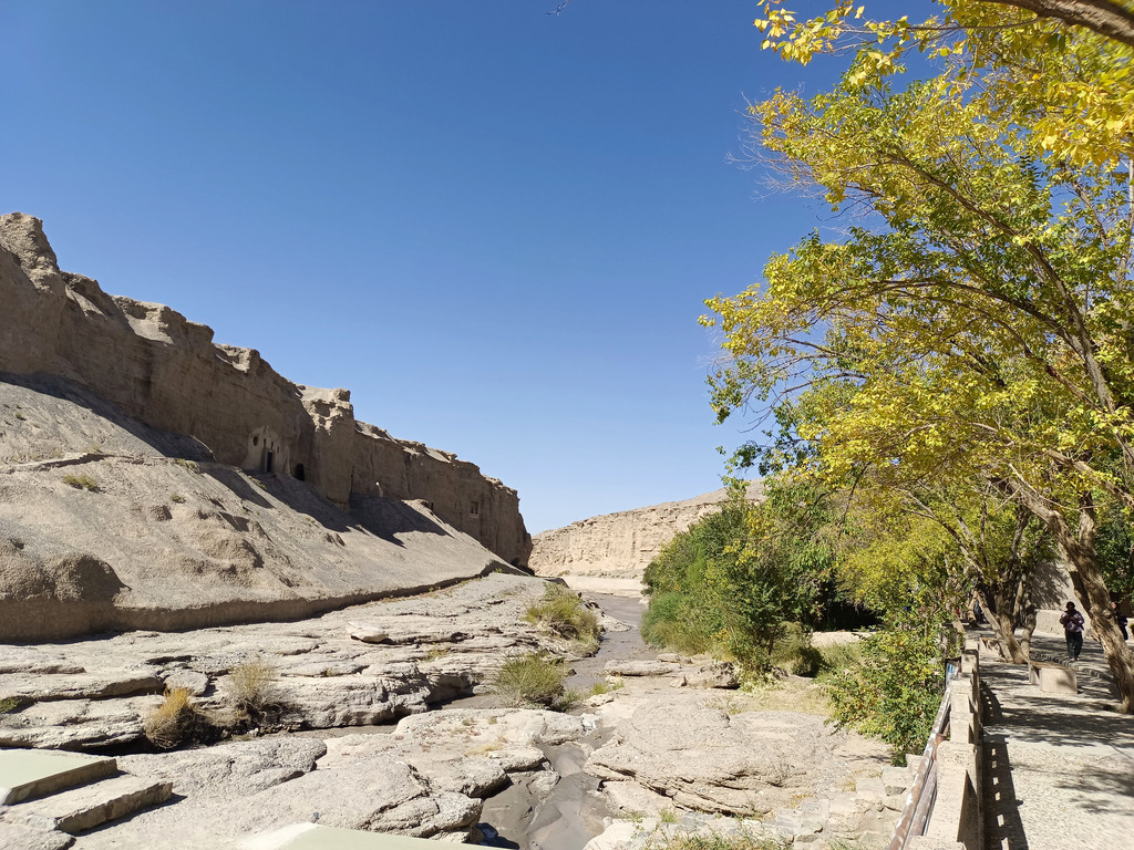 下午驱车前往榆林窟,路过榆林河河谷,河谷里有几株金灿灿的胡杨,非常符合我对大西北的印象。