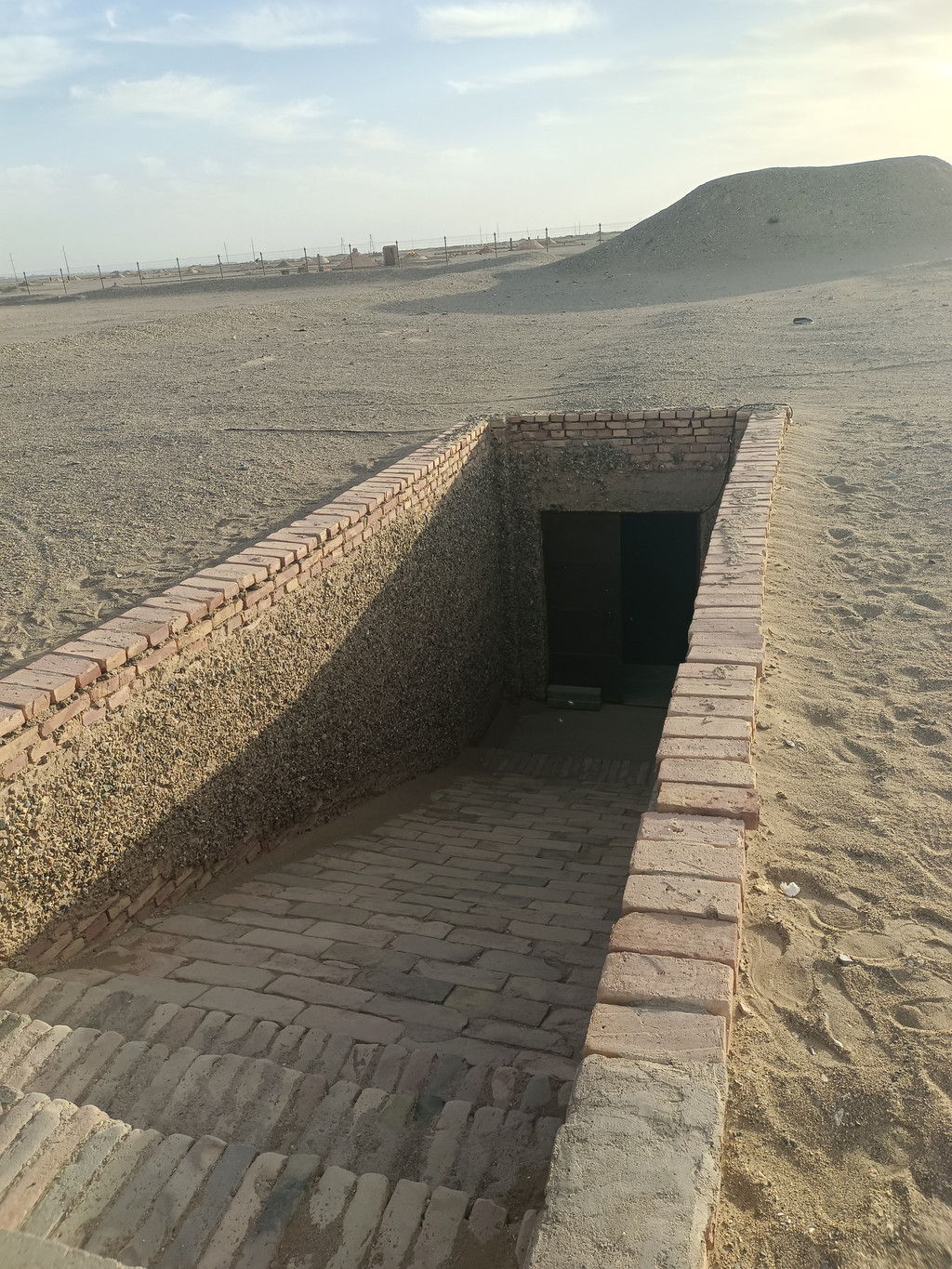 坐上导游车,第一站先去西晋墓画壁,离月牙泉不远,这一片是戈壁滩,也是敦煌的乱葬岗,但这个“乱葬岗”可不一般,有着从汉代到现代的各种坟、墓。