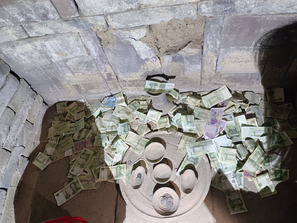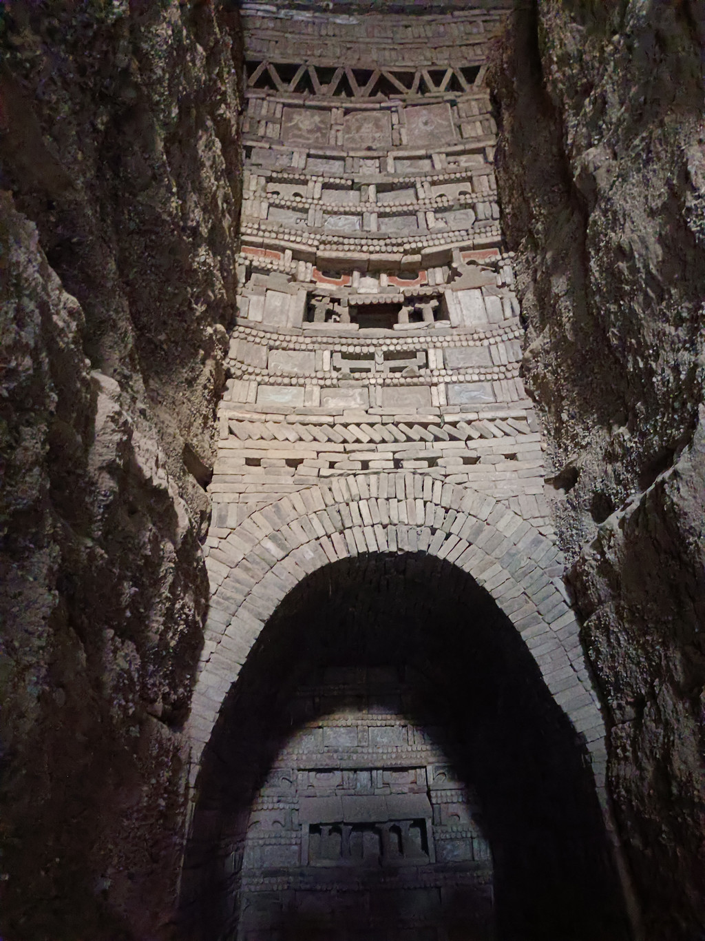 下到墓室里面,有个盗洞,是当时盗墓留下的,这个盗墓贼也是相当有水平,因为这个洞但凡偏一点,要么找不到墓,要么会把墓压塌。