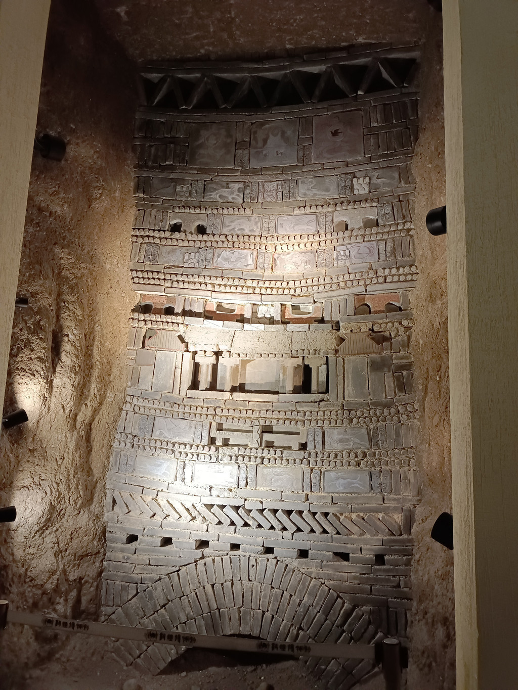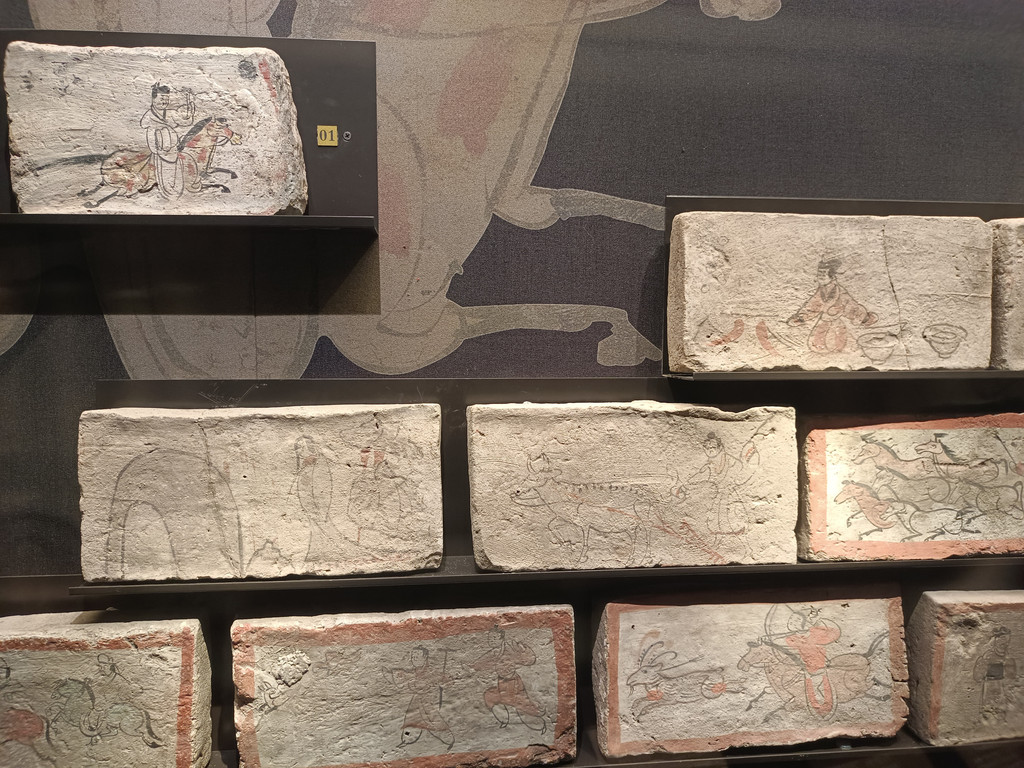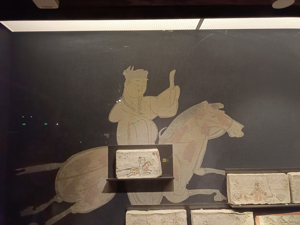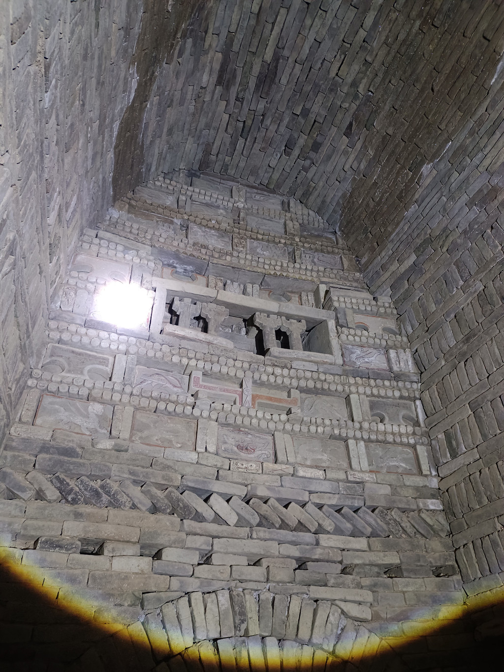 画像砖保留的很完好,历经一千多年,条纹和色彩都还是很清晰,导游讲解了一下壁画的内容,反映了墓主人“事死如事生”的思想。