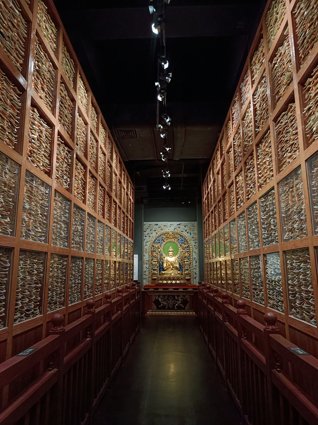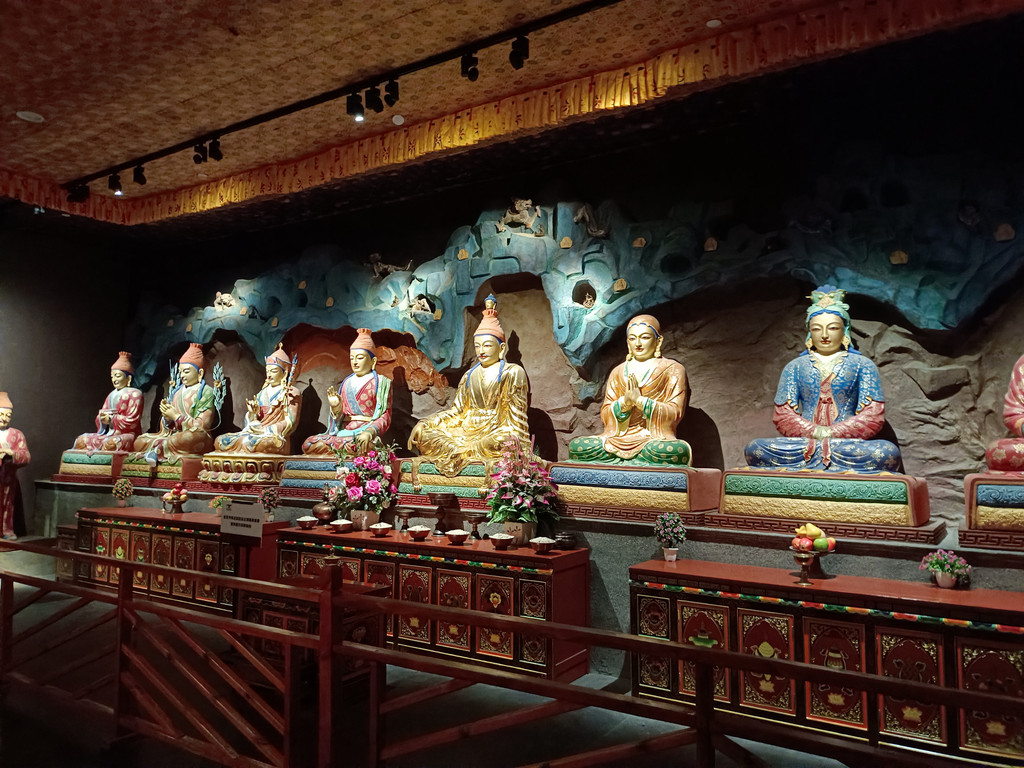 这个博物馆复制了布达拉宫的“法王洞”,法王洞供奉了松赞干布和文成公主、尼泊尔尺尊公主以及一些大臣。