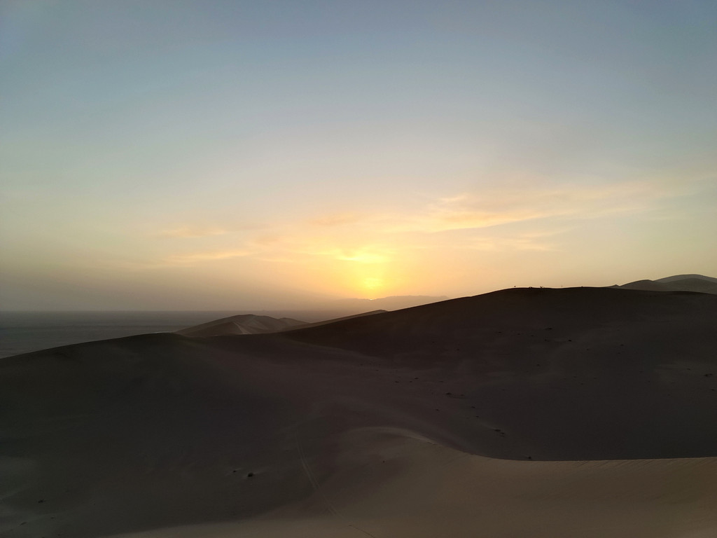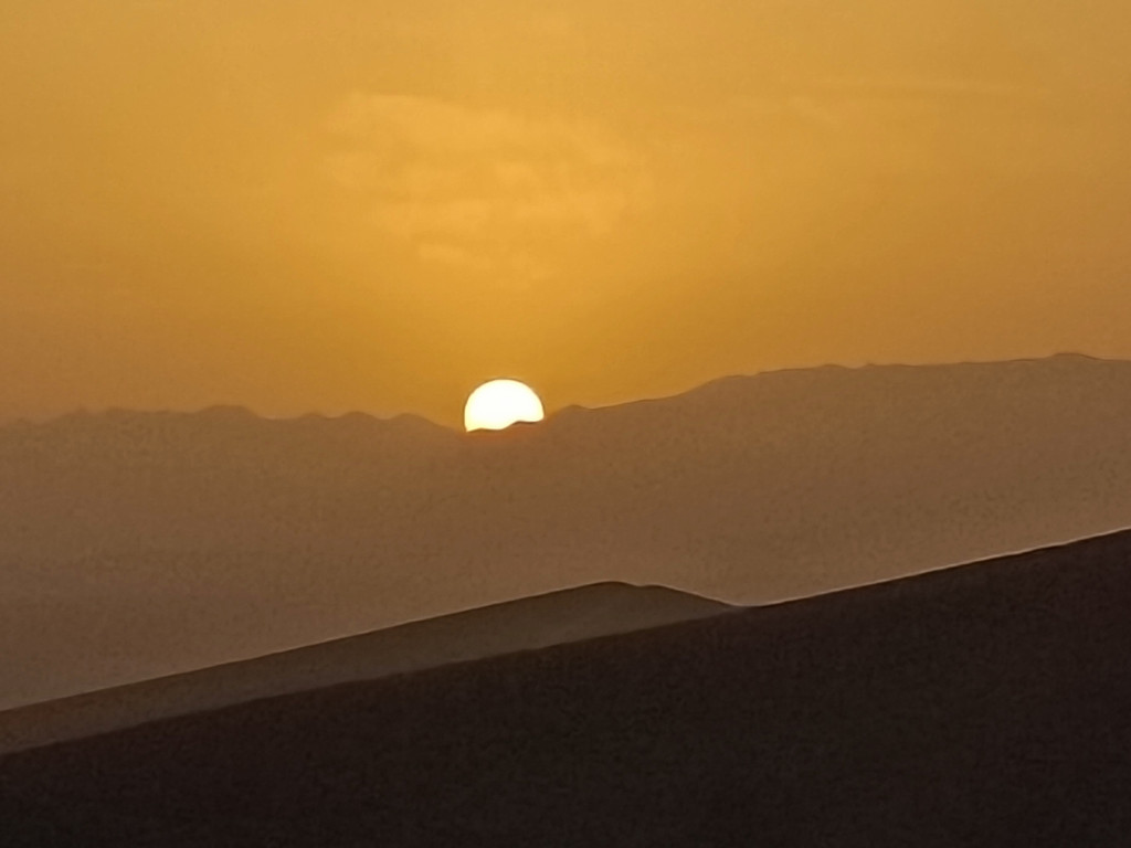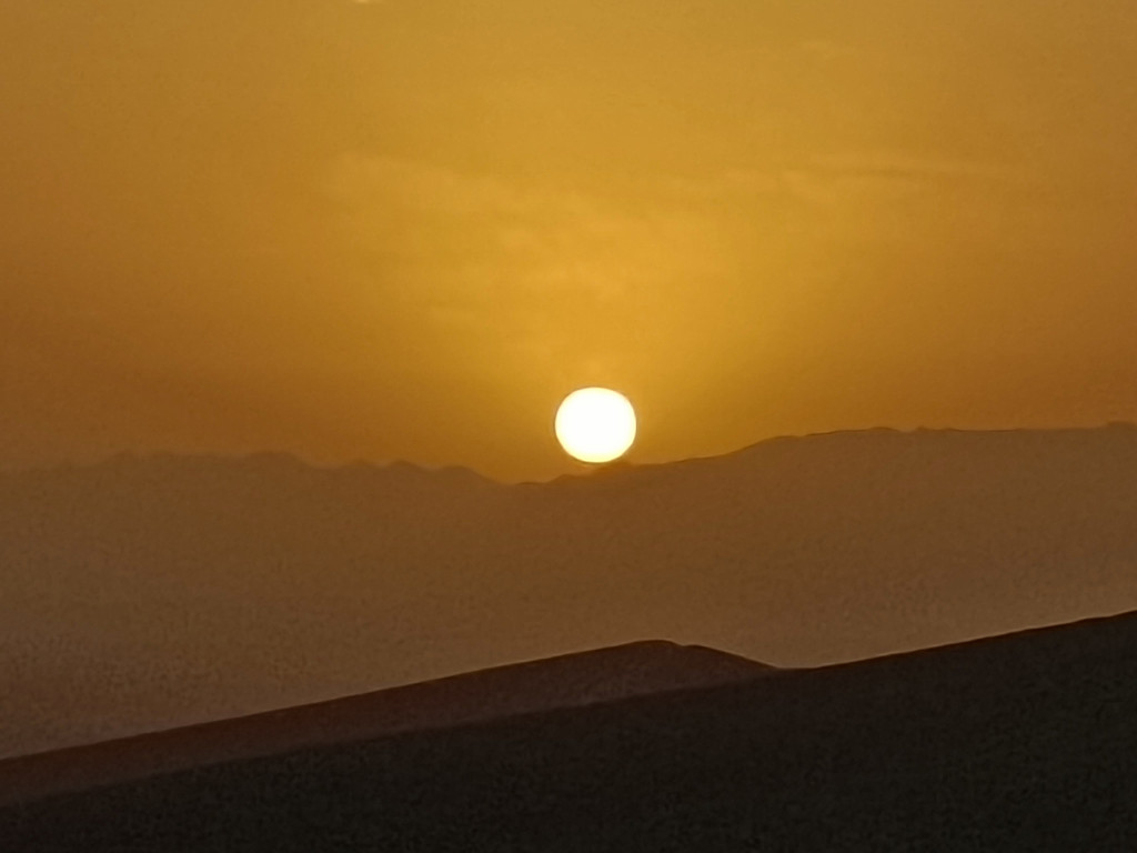 也就一两分钟时间,太阳便完全升起了,这个位置真是绝佳,看着太阳从山边一点点升起,前面还有起伏的沙丘,真是一场难忘的观日出之行。
