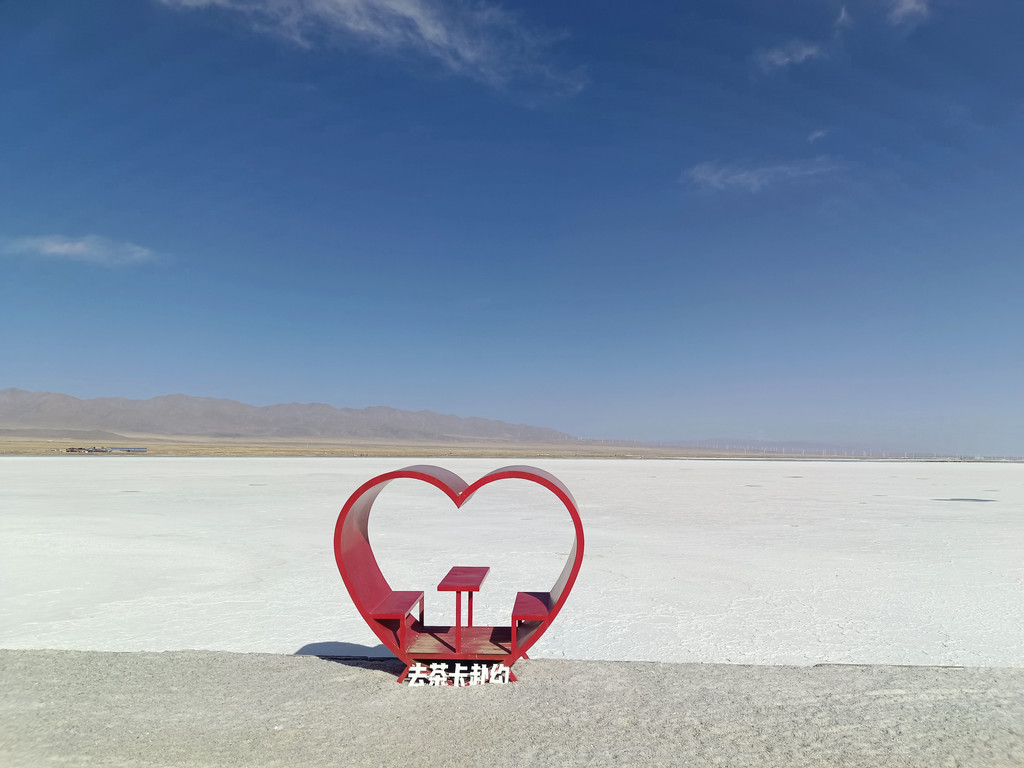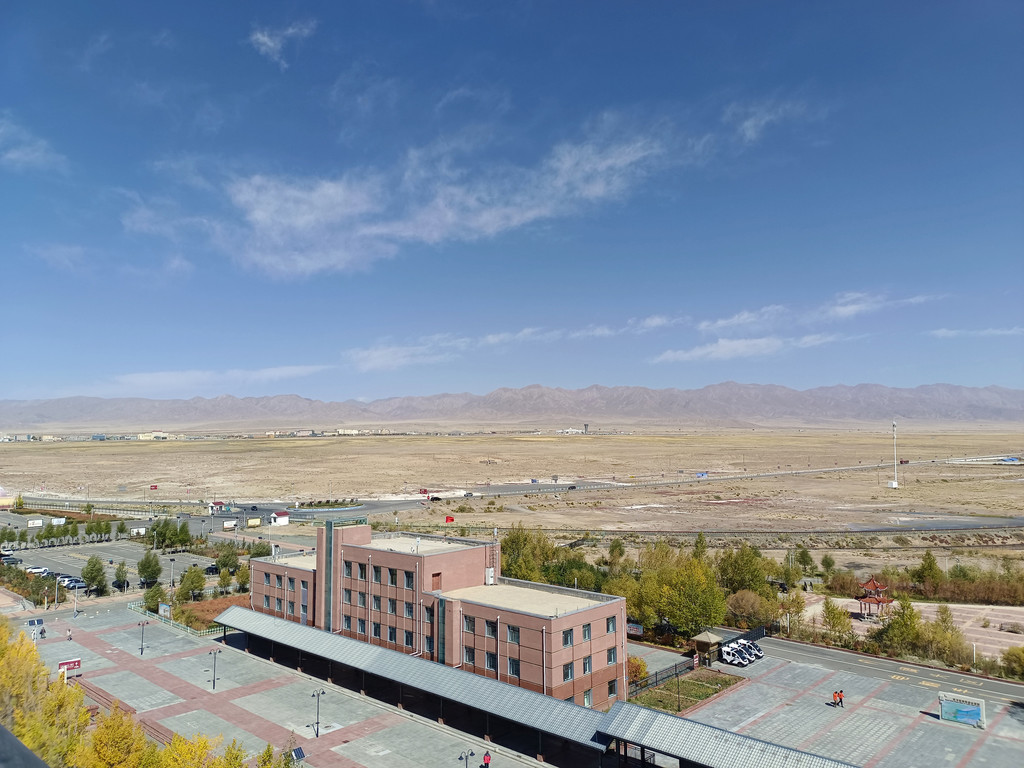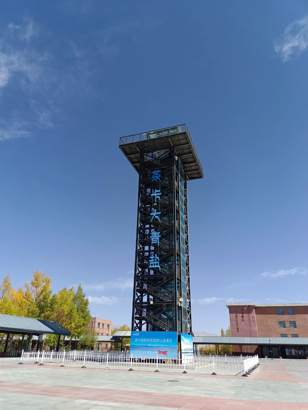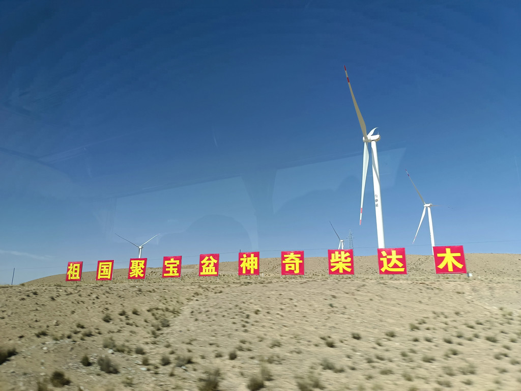 到达柴达木盆地,看到这样的标语,我还去查了一下为什么叫柴达木为“聚宝盆”,原来这里是盆地地形,矿产、太阳能、风能都很丰富。这么一想这个知识点似乎在中学地理学过的,死去的记忆复活了一丁点。