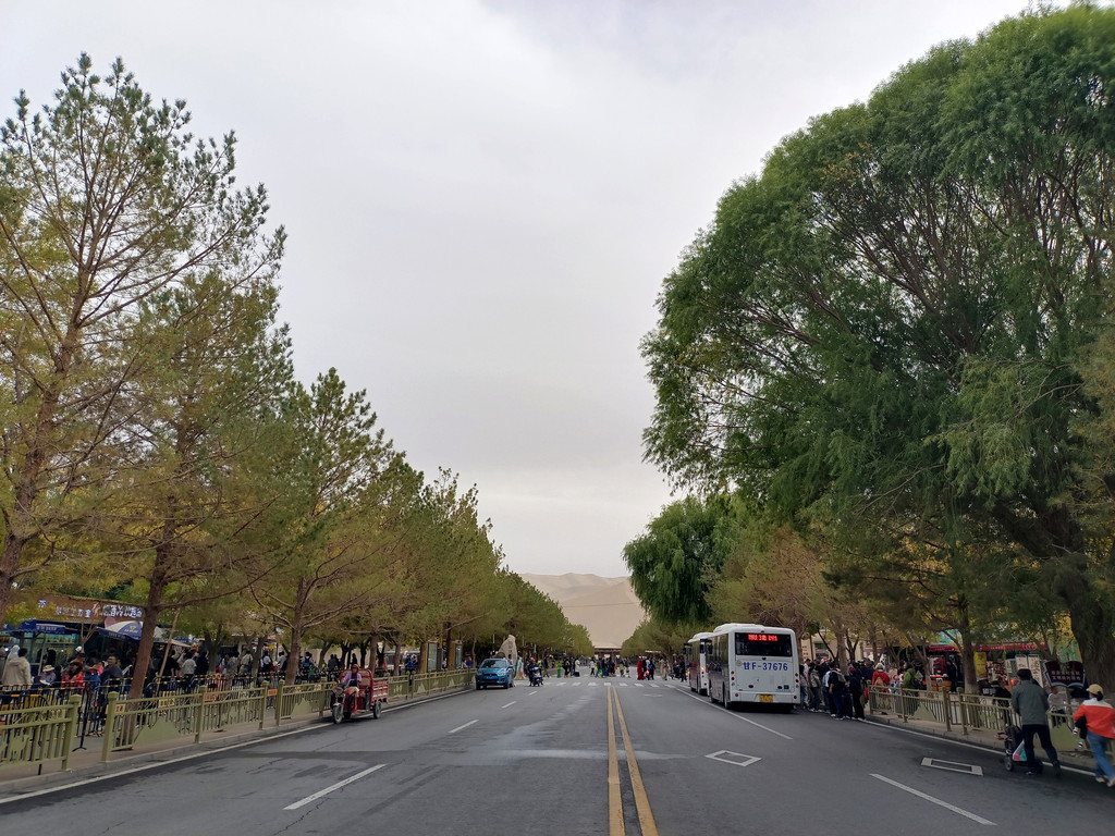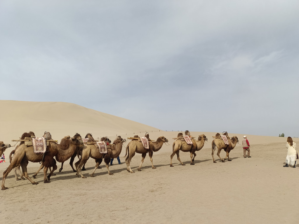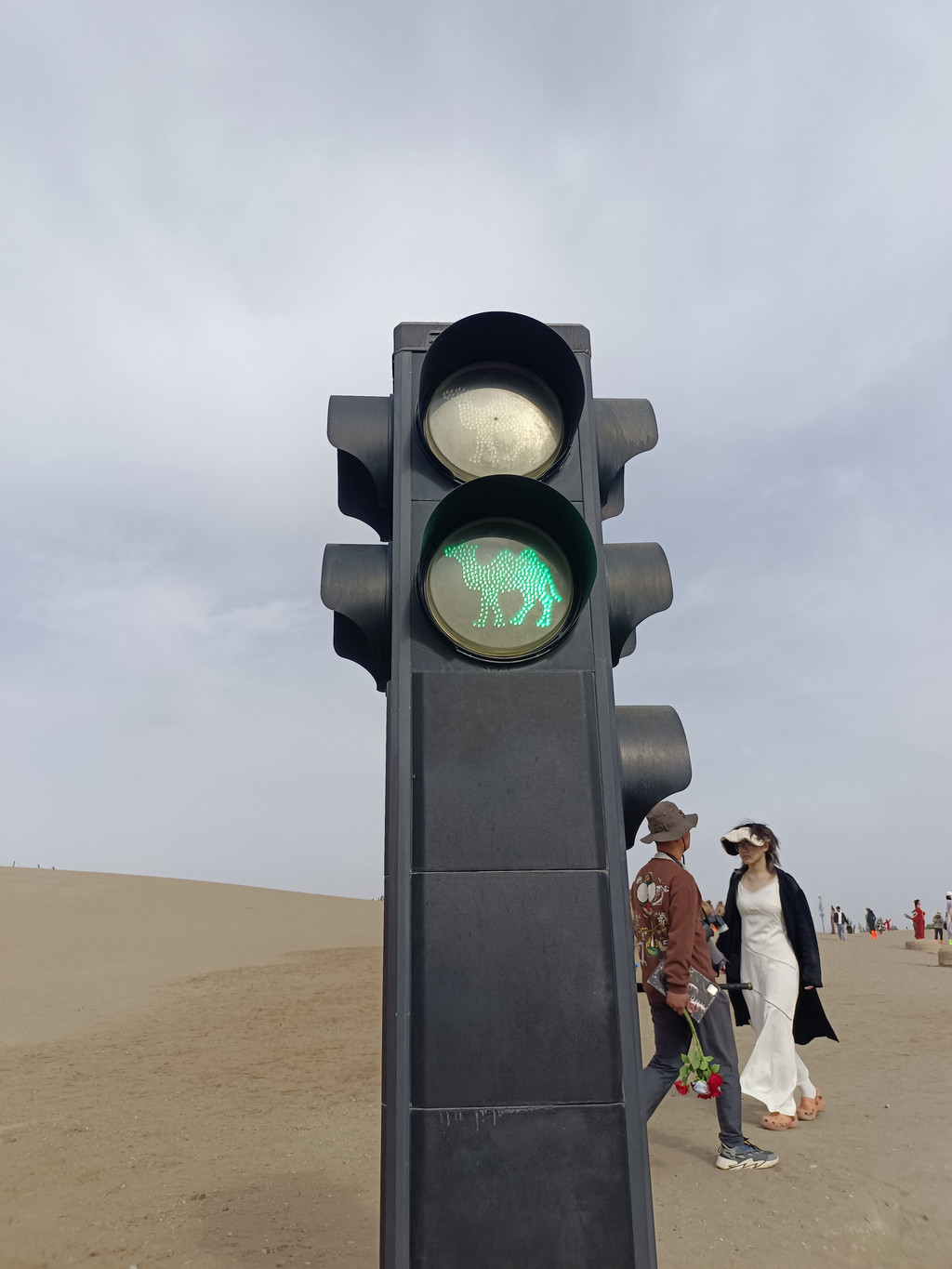 景区出口位置有骑骆驼的,可以骑着骆驼进到沙山里走一圈,连红绿灯都是骆驼。
