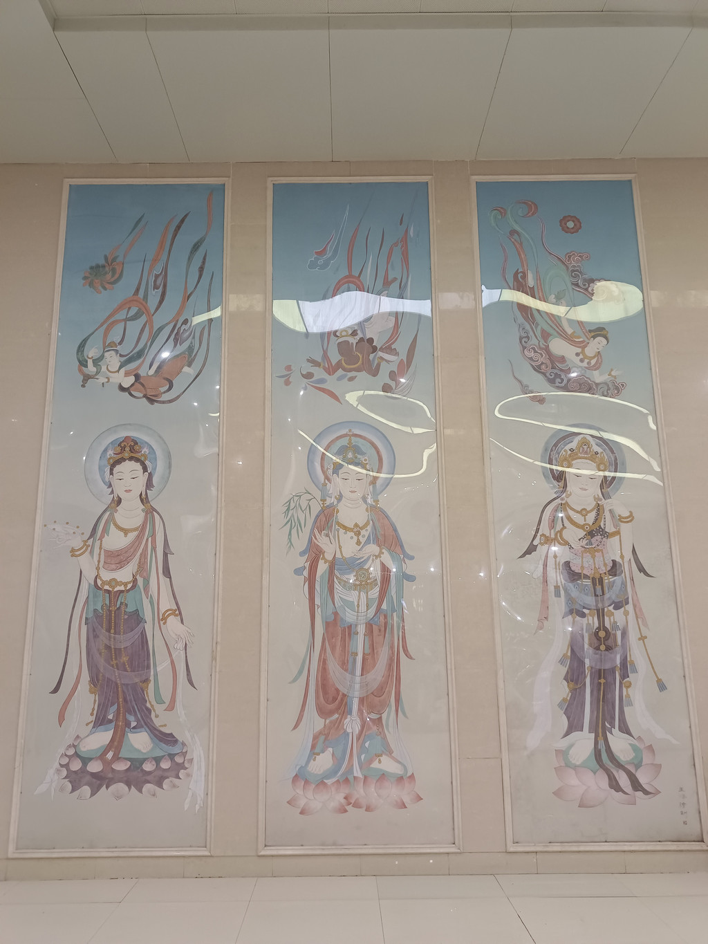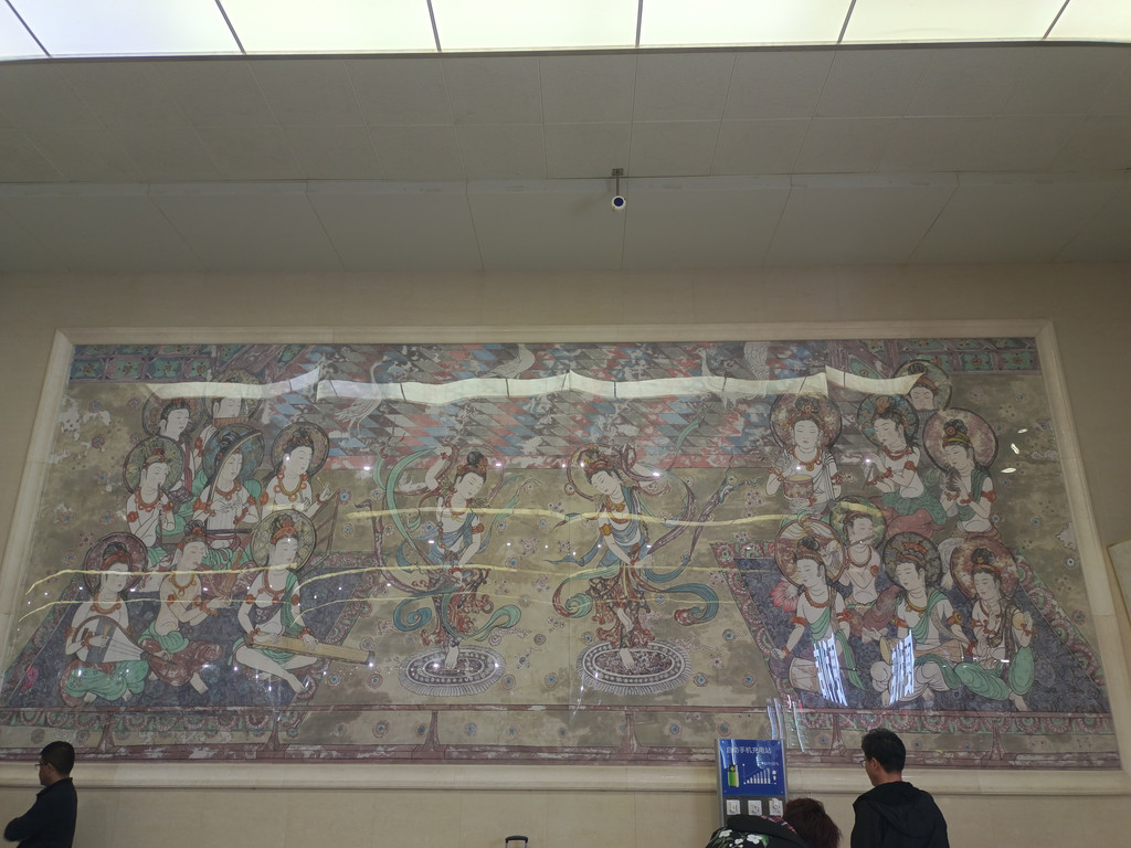 敦煌车站里的装饰画也都是莫高窟的壁画元素。