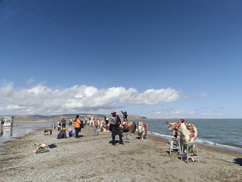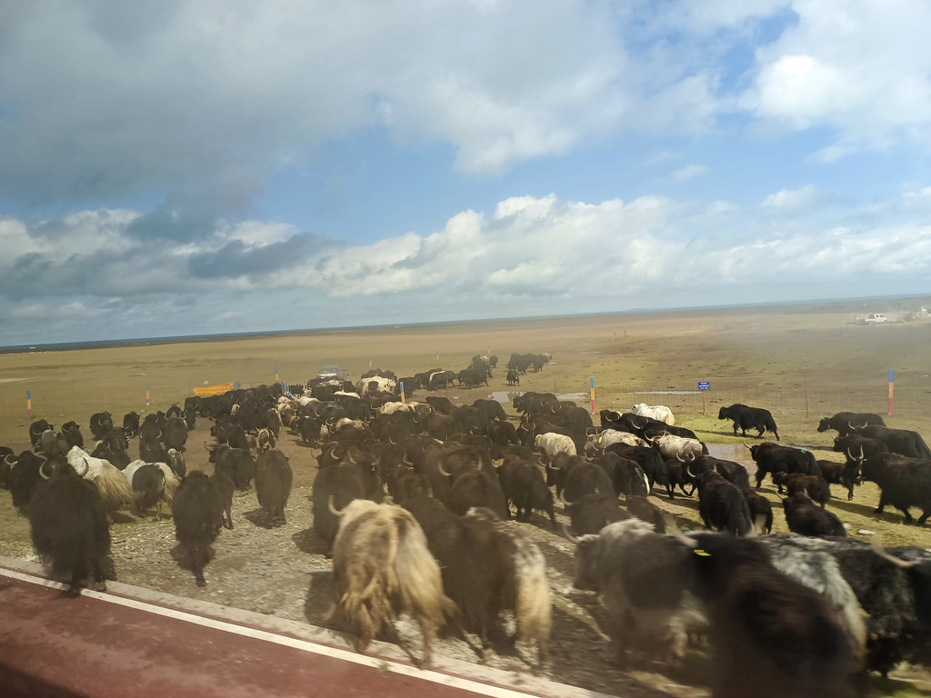 大巴沿着青海湖边的公路一路飞驰,天气时阴时晴,听说青海湖的颜色是随着天气变化的,有点担心如果是阴天的话,风景会大打折扣。