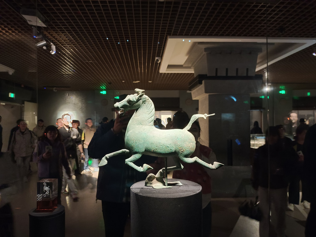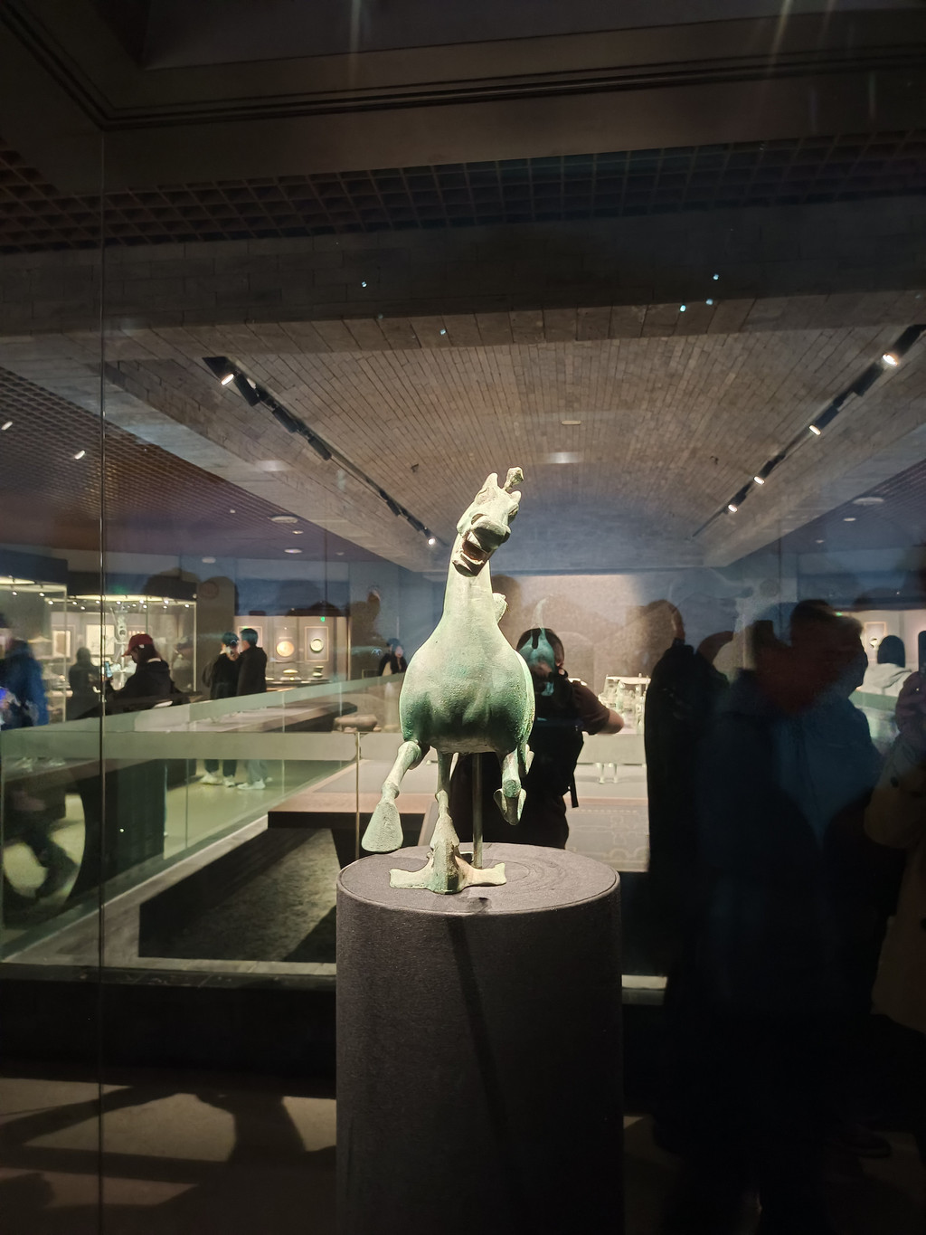 一入场,第一站直奔“马踏飞燕”这个最重要也是我最想看的文物,造型果真非常优美,但比想象中小,可能在各地看旅游标志看多了,我以为会像真马那么大,实际也就十分之一吧。马踏飞燕一年只有一半时间展出真品,另一半时间展出复制品,很幸运这次看到的是真品。