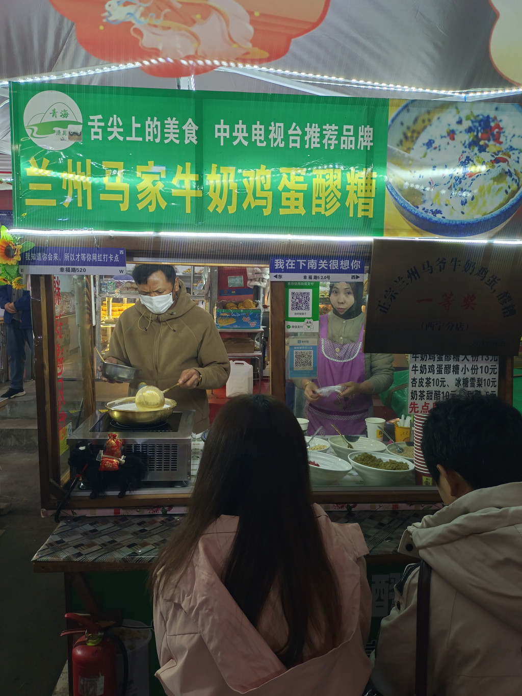 在夜市买了一杯“兰州马家牛奶鸡蛋醪糟”,味道不错。我还想着去兰州也试一下正宗的马家牛奶鸡蛋醪糟,没想到兰州的夜市上有十几家“马家牛奶鸡蛋醪糟”,这是后话了。