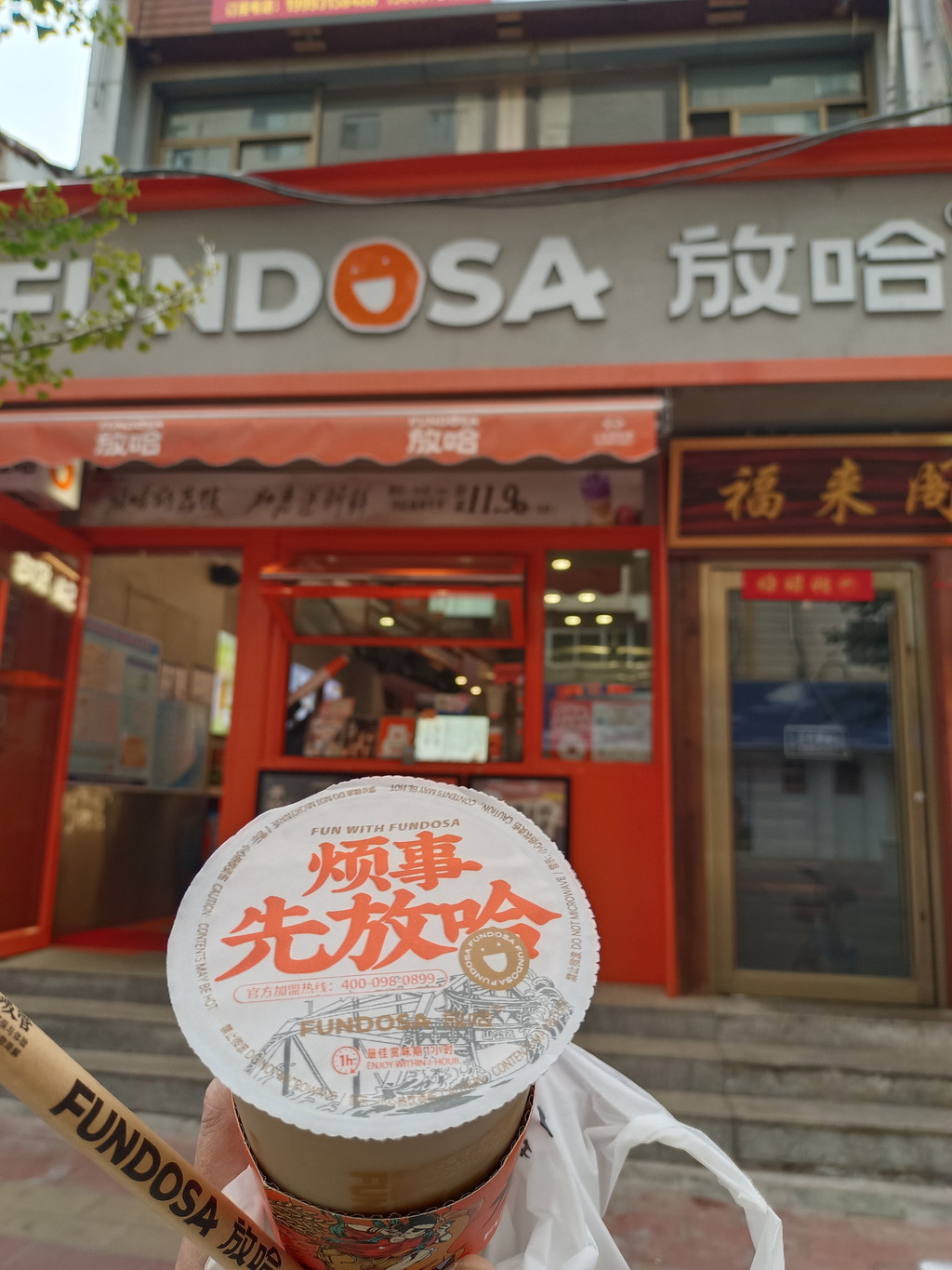 吃过早饭慢慢骑车去兰州市博物馆,路过奶茶店先来一杯“放哈”。