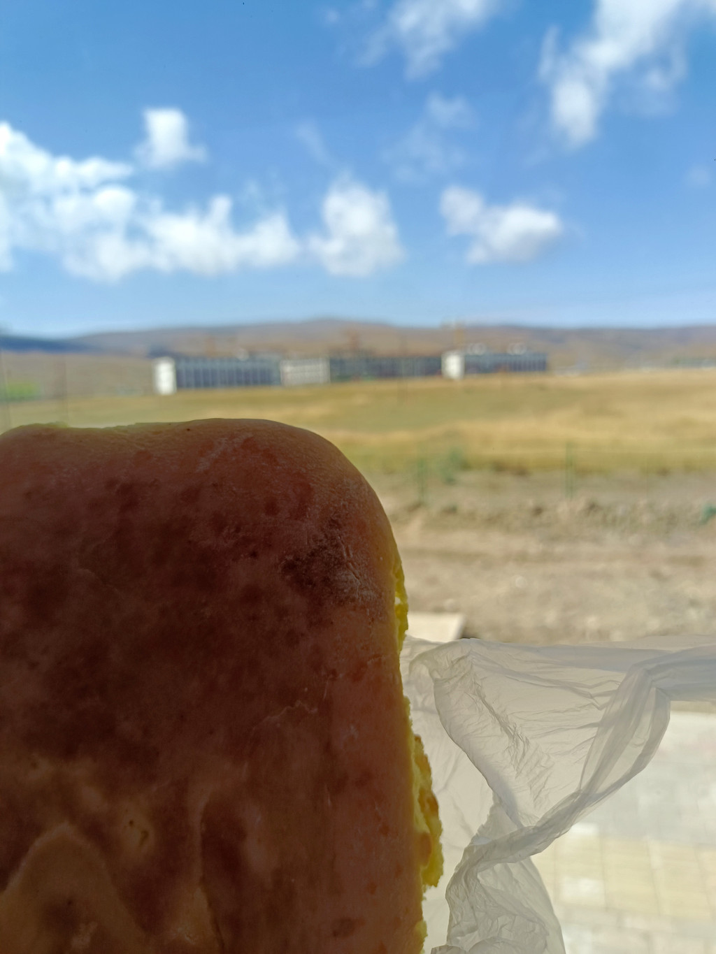 在路边买了个沙葱牛肉饼当早餐,但是又贵又难吃,毕竟是景区,还有一杯淡的像水一样的豆浆。