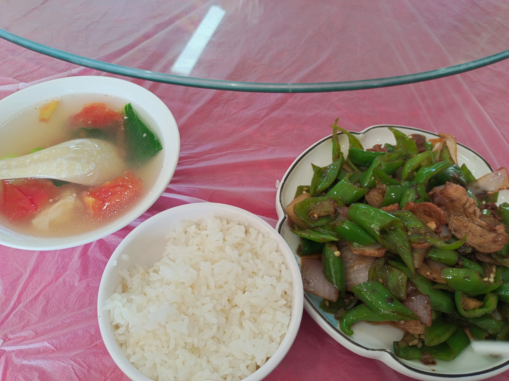中午在到导游推荐的饭店吃了个青椒炒肉套餐。
