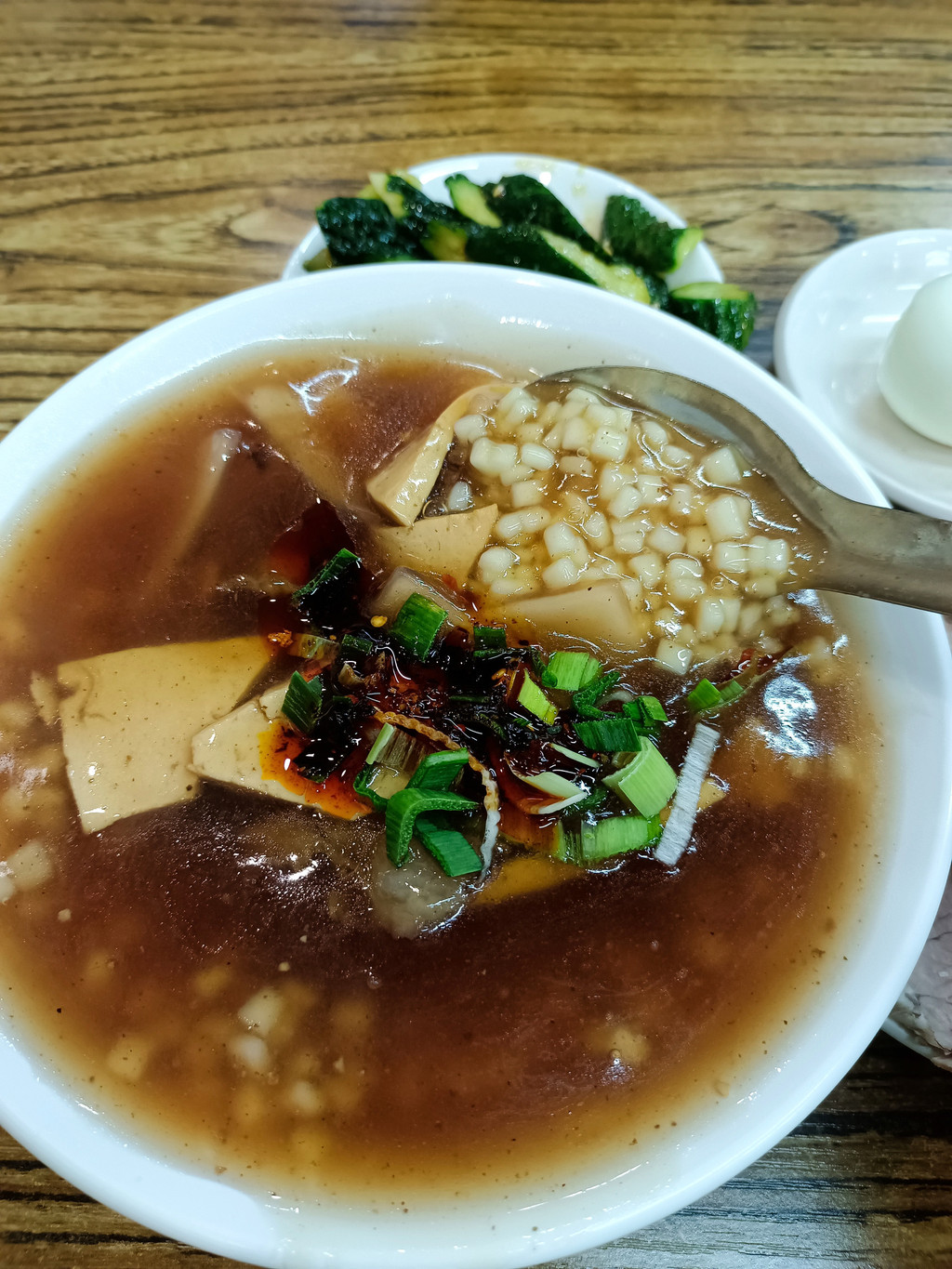 虽然吃的是“魏家凉皮”,但天气有点凉,于是点了热米皮,也算是西北特色了,毕竟凉皮到处都有,热米皮可不常见,还挺好吃的。