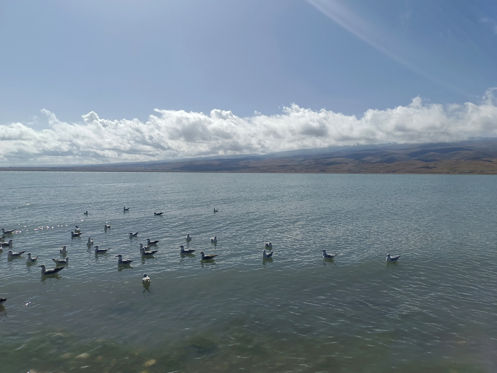 青海湖真的很大,古时的“西海”,在湖边,湖水一浪一浪的拍打着岸边,真是跟海边一样,难怪被称为“海”,不愧是中国最大的湖。天公作美,风景也是无敌漂亮,湖面碧蓝,远远能隐约看到雪山,湖上还有很多水鸟,非常悠闲。