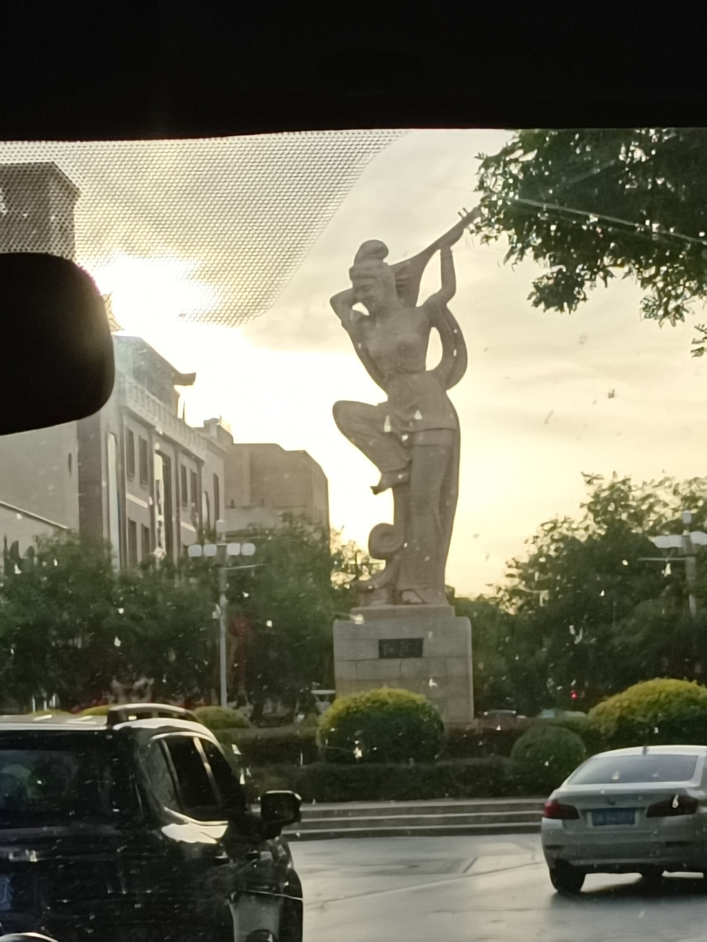 回到敦煌市区,市中心有一尊反弹琵琶雕像。