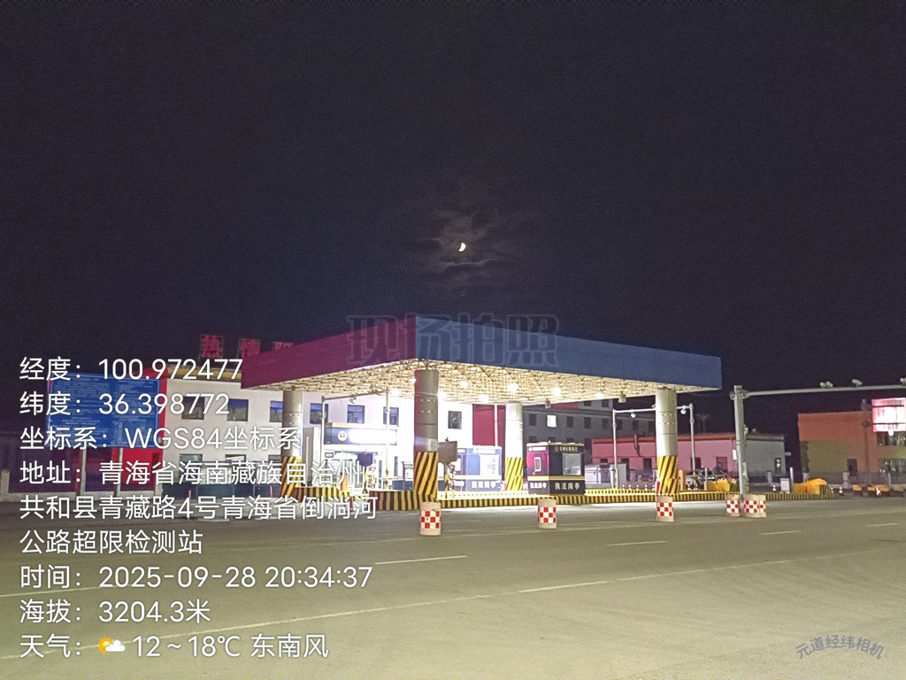 路上的加油站拍了一张带经纬度的照片,海拔3204米