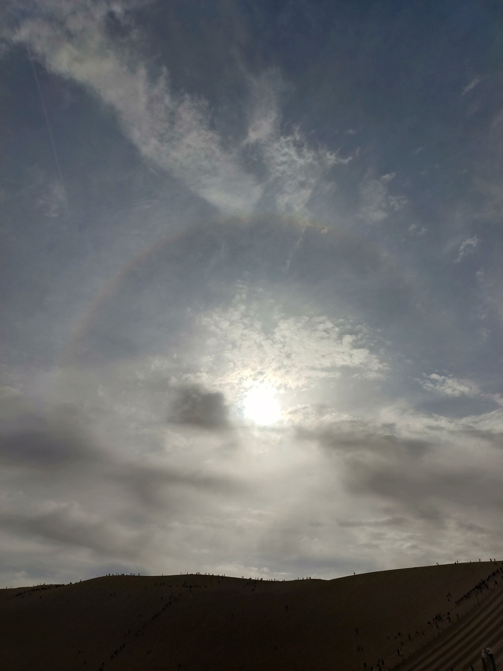 走了一会随便坐下来歇歇,一抬头竟看到了太阳周围的彩虹光圈,这可能就是古人认为的“佛光”吧,一两分钟就消失了。感觉自己真是太幸运了,如果不是随便坐下来休息,我也不会刻意抬头看,可能就看不到了。