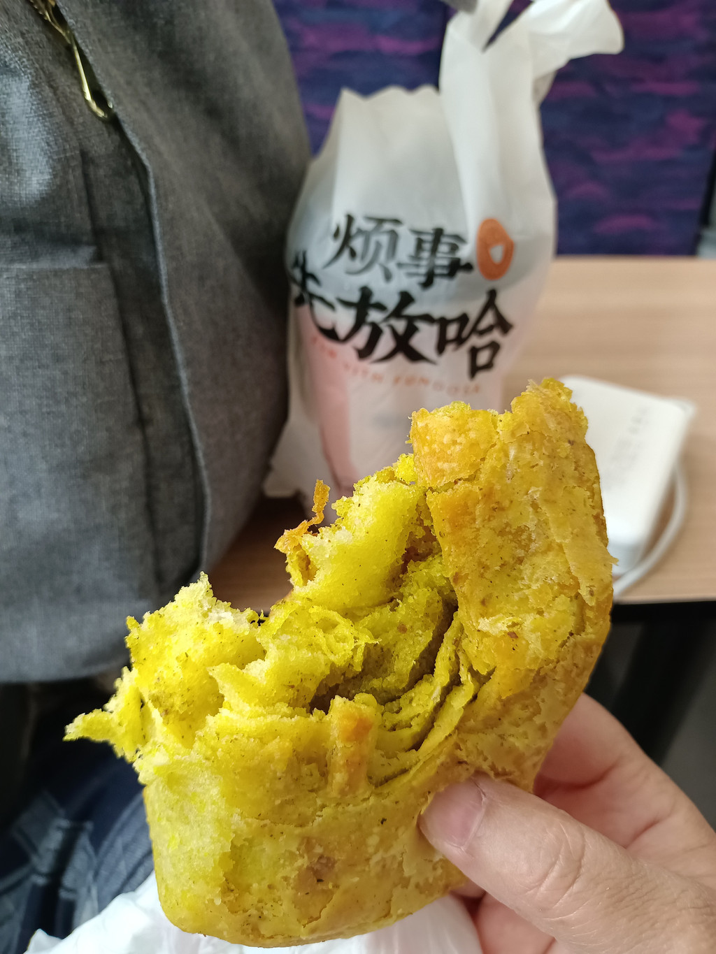 在车上吃了我的临夏大饼,放了很多油酥,蓬松暄软,非常好吃。