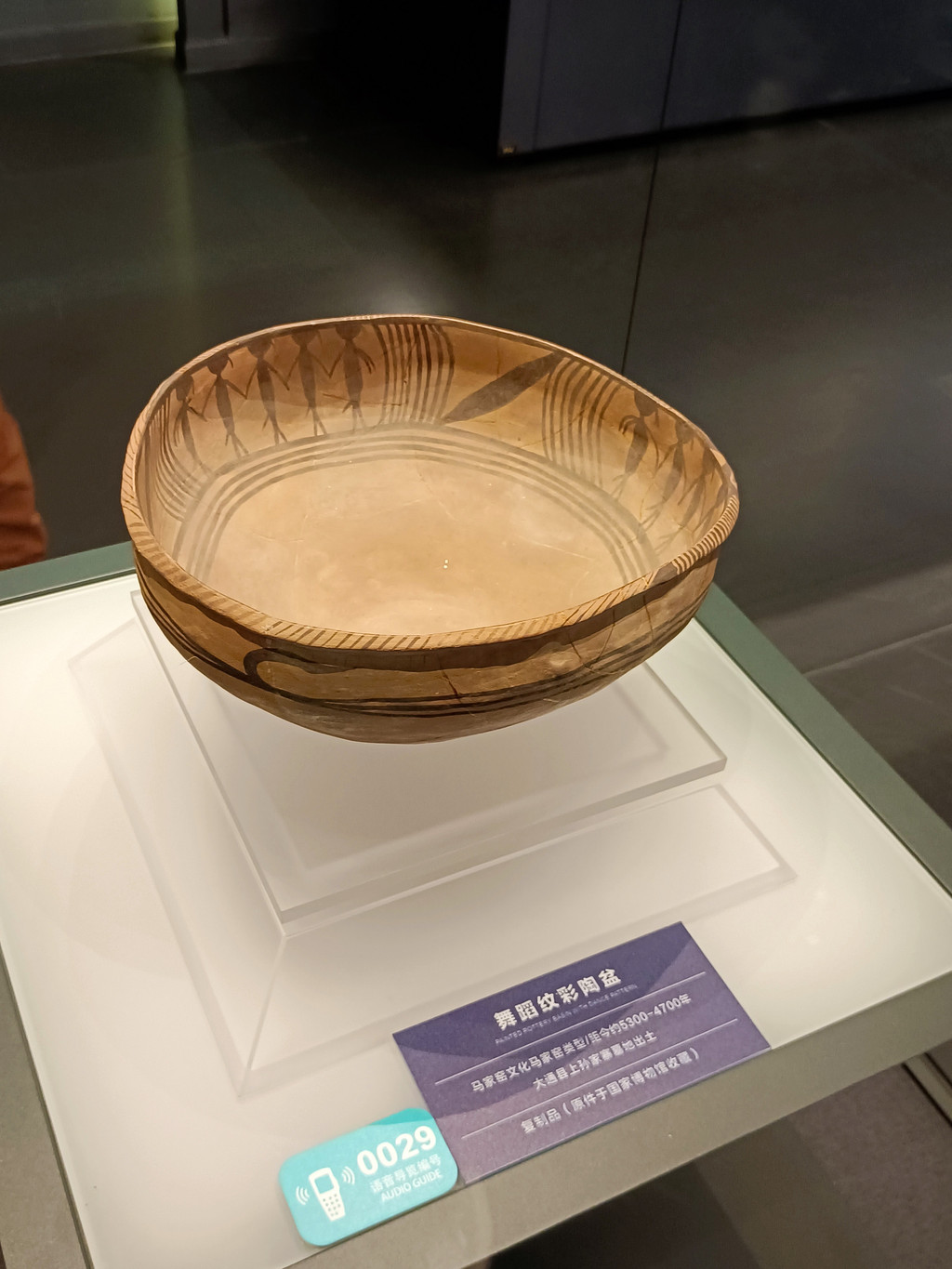 跳舞小人陶盆,这个跳舞小人纹饰在同时期的陶器中非常特别。