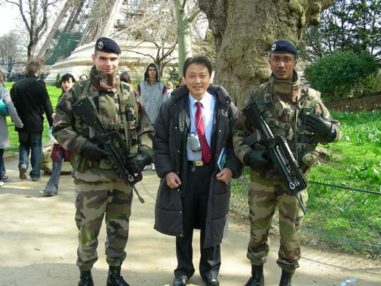 2007年3月,在巴黎埃菲尔铁塔下与兵哥合影