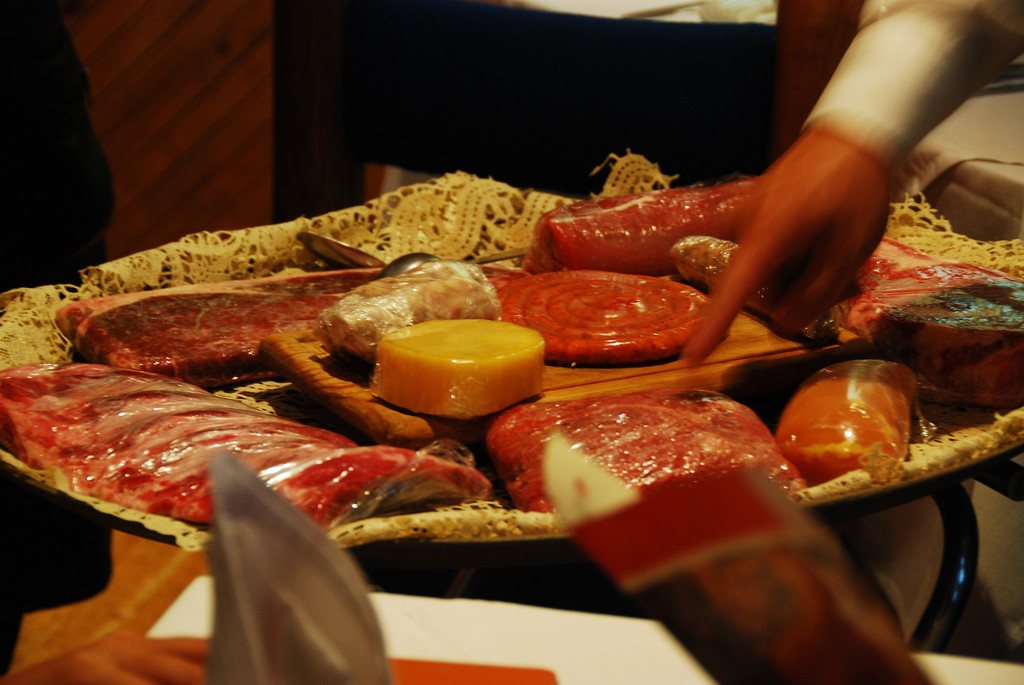 墨西哥烤肉原材料,先让客人过目。2012年国庆,摄于墨西哥城
